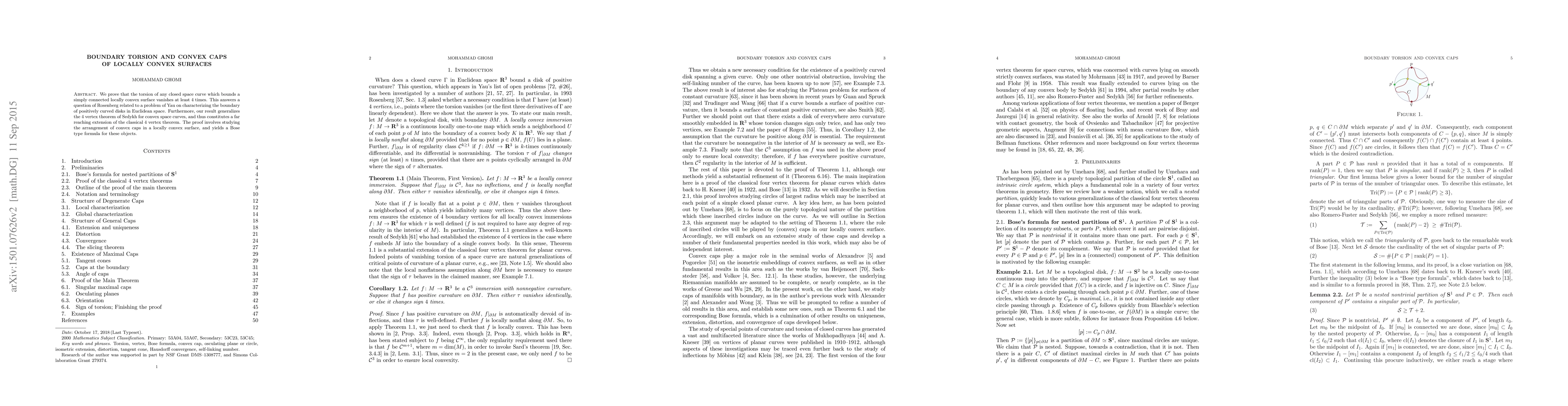 This research proves that the torsion of any closed space curve bounding a simply connected locally convex surface vanishes at least four times, extending the 4 vertex theorem for convex curves and addressing a question posed by Rosenberg. The proof analyzes the arrangement of convex caps in such surfaces, providing a new Bose type formula.