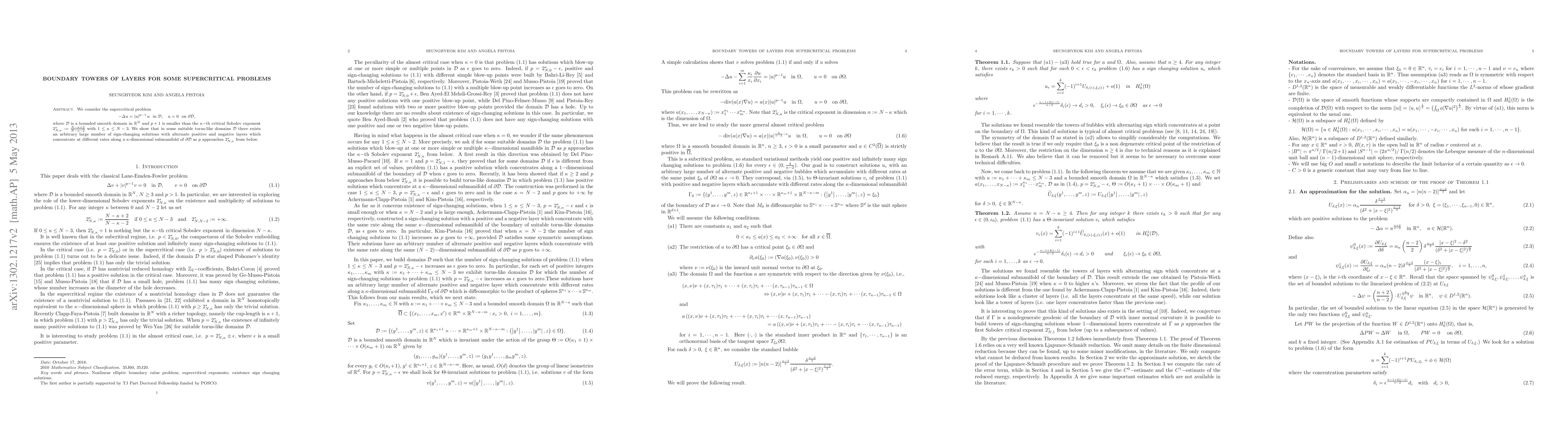 We show that in some suitable torus-like domains D some supercritical elliptic problems have an arbitrary large number of sign-changing solutions with alternate positive and negative layers which concentrate at different rates along a k-dimensional submanifold of the boundary of D as p approaches 2*_{N,K} from below.