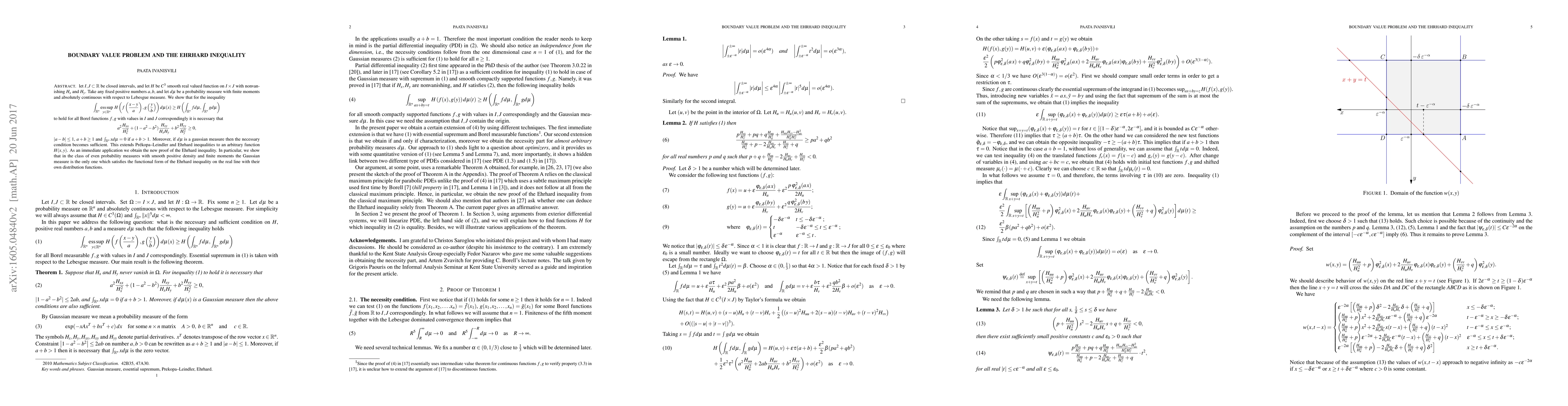 This paper establishes necessary conditions for the validity of a boundary value problem involving the Ehrhard inequality. It shows that for a given smooth function $H$, the inequality holds if certain conditions on $a$ and $b$ are met, extending Pr\'ekopa--Leindler and Ehrhard inequalities. It also proves that the Gaussian measure is the unique solution in the class of even probability measures satisfying the functional form of the Ehrhard inequality.