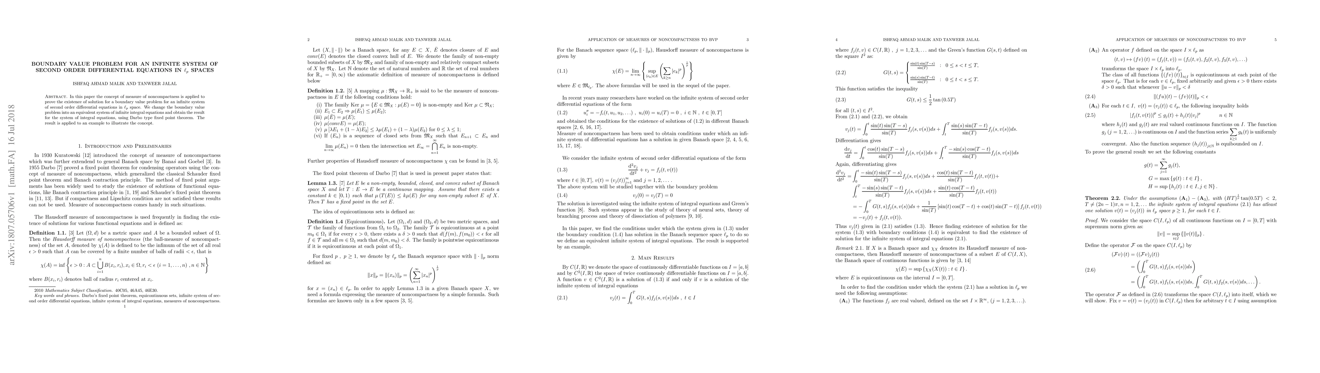 This paper proves the existence of solutions for an infinite system of second-order differential equations in $ extit{l}_p$ space using measure of noncompactness and Darbo type fixed point theorem.