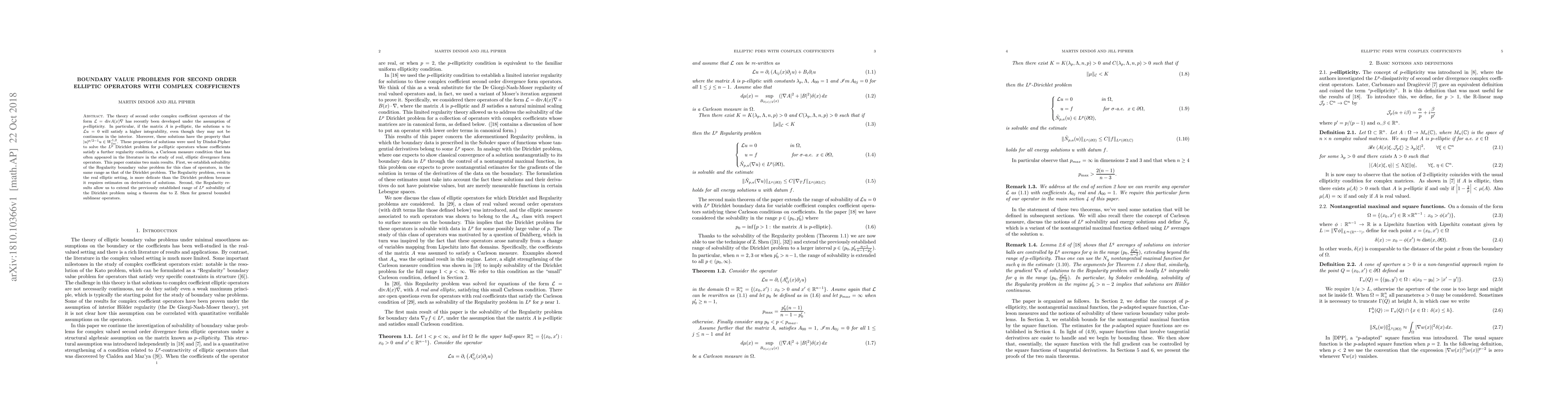 This paper addresses boundary value problems for second-order elliptic operators with complex coefficients under $p$-ellipticity, establishing solvability for the Regularity problem and extending the $L^p$ solvability of the Dirichlet problem using Shen's theorem for bounded sublinear operators.