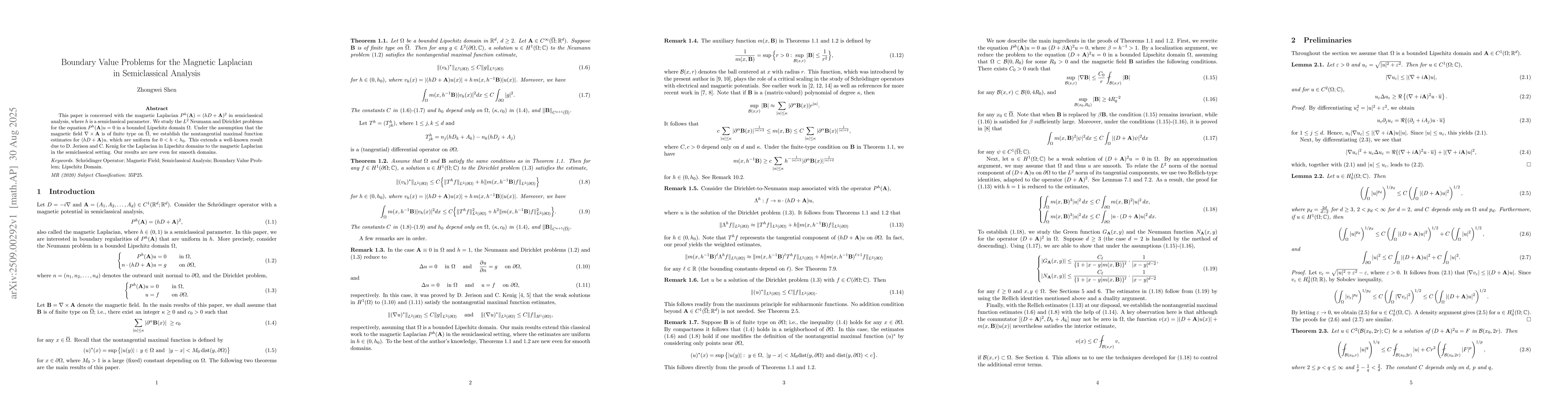 This paper is concerned with the magnetic Laplacian $P^h (\A)=(h D+\A)^2$ in semiclassical analysis, where $h$ is a semiclassical parameter. We study the $L^2$ Neumann and Dirichlet problems for the equation $P^h(\A)u=0$ in a bounded Lipschitz domain $\Omega$. Under the assumption that the magnetic field $\nabla \times \A$ is of finite type on $\overline{\Omega}$, we establish the nontangential maximal function estimates for $(h D+\A)u$, which are uniform for $0< h< h_0$. This extends a well-known result due to D. Jerison and C. Kenig for the Laplacian in Lipschitz domains to the magnetic Laplacian in the semiclassical setting. Our results are new even for smooth domains.