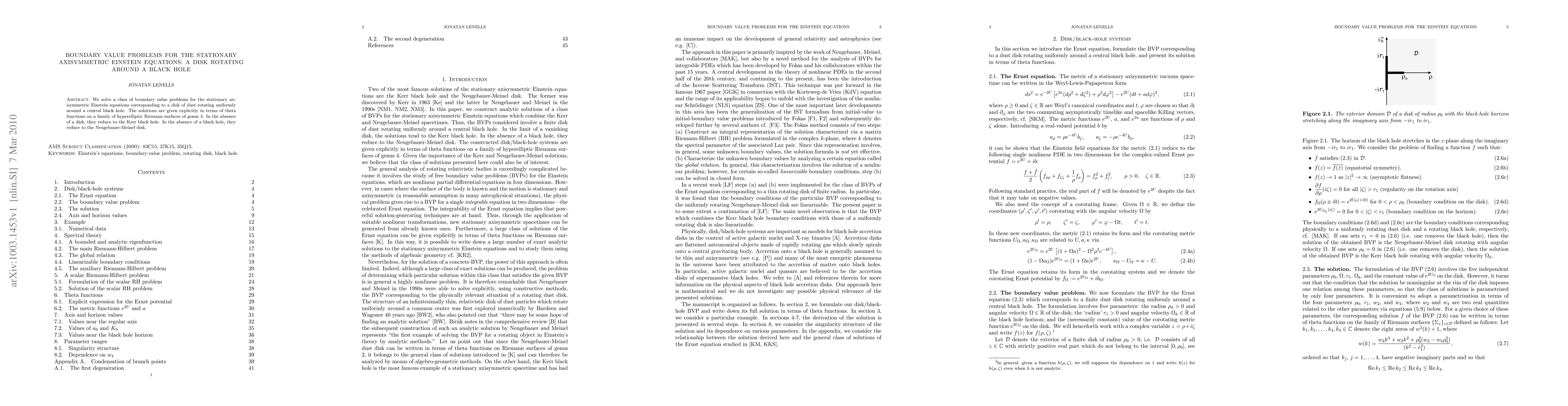 We solve a class of boundary value problems for the stationary axisymmetric Einstein equations corresponding to a disk of dust rotating uniformly around a central black hole. The solutions are given explicitly in terms of theta functions on a family of hyperelliptic Riemann surfaces of genus 4. In the absence of a disk, they reduce to the Kerr black hole. In the absence of a black hole, they reduce to the Neugebauer-Meinel disk.