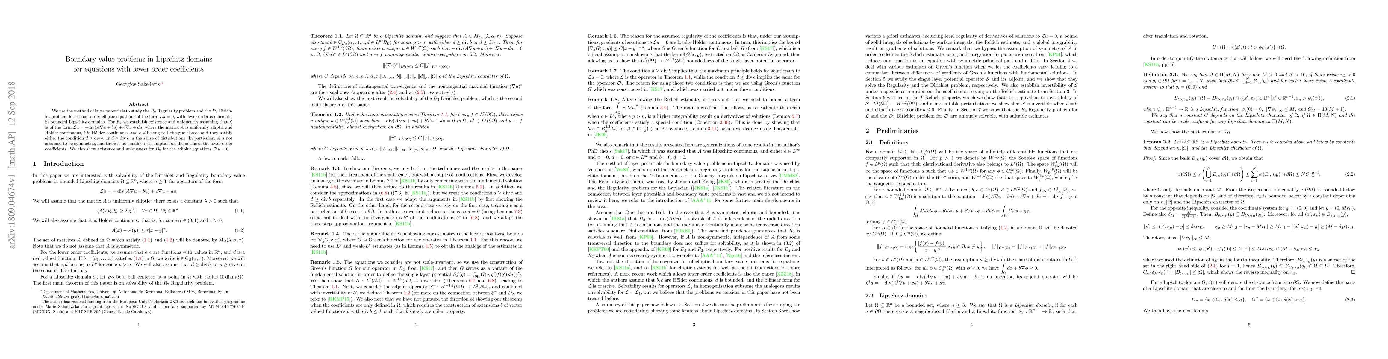 This paper investigates the $R_2$ Regularity problem and the $D_2$ Dirichlet problem for second-order elliptic equations with lower-order coefficients in bounded Lipschitz domains using layer potentials. It establishes existence and uniqueness without requiring symmetry of the matrix $A$ or smallness assumptions on the lower-order coefficients.