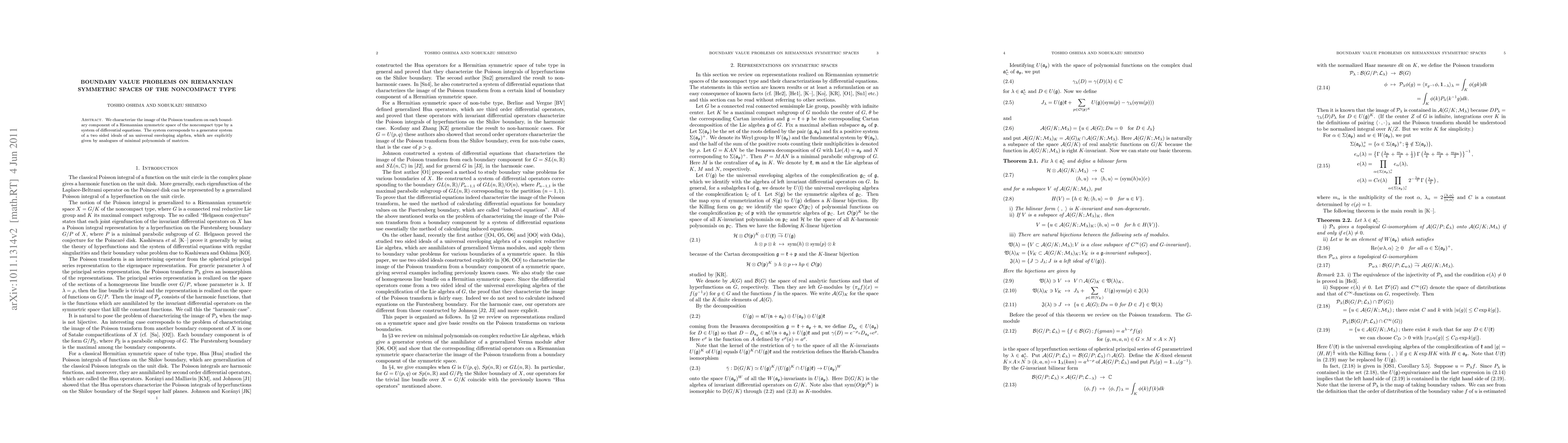 We characterize the image of the Poisson transform on any distinguished boundary of a Riemannian symmetric space of the noncompact type by a system of differential equations. The system corresponds to a generator system of a two sided ideals of an universal enveloping algebra, which are explicitly given by analogues of minimal polynomials of matrices.