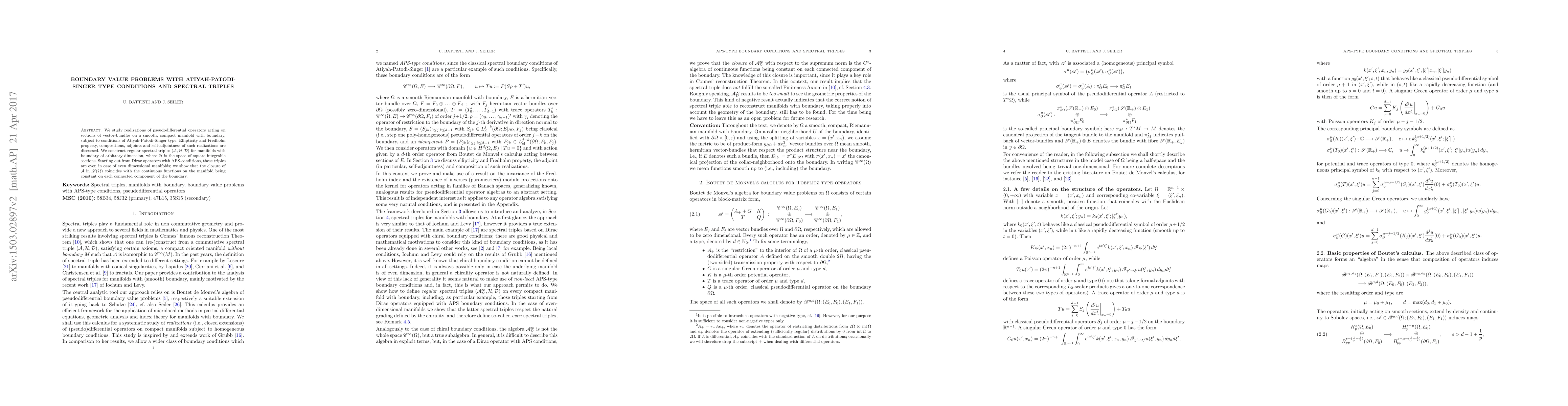 This paper investigates pseudodifferential operators on compact manifolds with boundary, focusing on Atiyah-Patodi-Singer (APS) type conditions. It constructs regular spectral triples for such manifolds, demonstrating that these triples are even in even dimensions and that the algebra closure aligns with continuous functions constant on boundary components.
