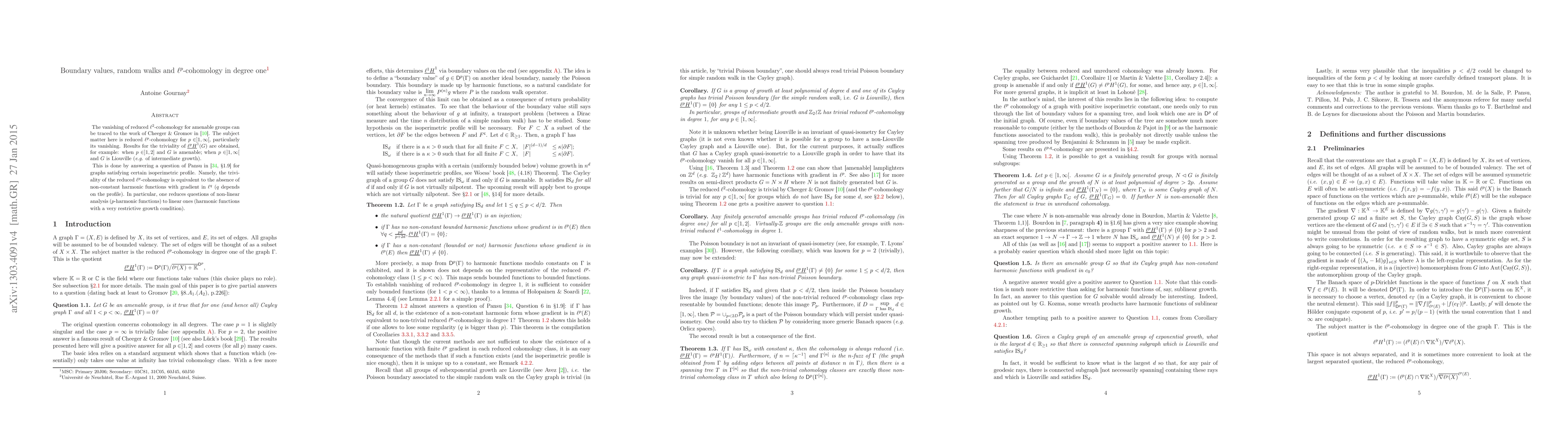 The vanishing of reduced $\ell^2$-cohomology for amenable groups can be traced to the work of Cheeger & Gromov. The subject matter here is reduced $\ell^p$-cohomology for $p \in ]1,\infty[$, particularly its vanishing. Results showing its triviality are obtained, for example: when $p \in ]1,2]$ and $G$ is amenable; when $p \in ]1,\infty[$ and $G$ is Liouville (in particular, of intermediate growth). This is done by answering a question of Pansu assuming the graph satisfies an isoperimetric profile. Namely, the triviality of the reduced $\ell^p$-cohomology is equivalent to the absence of non-constant bounded (equivalently, not necessarily bounded) harmonic functions with gradient in $\ell^q$ ($q$ depends on the profile). In particular, one reduces questions of non-linear analysis ($p$-harmonic functions) to linear ones (harmonic functions with a restrictive growth condition).