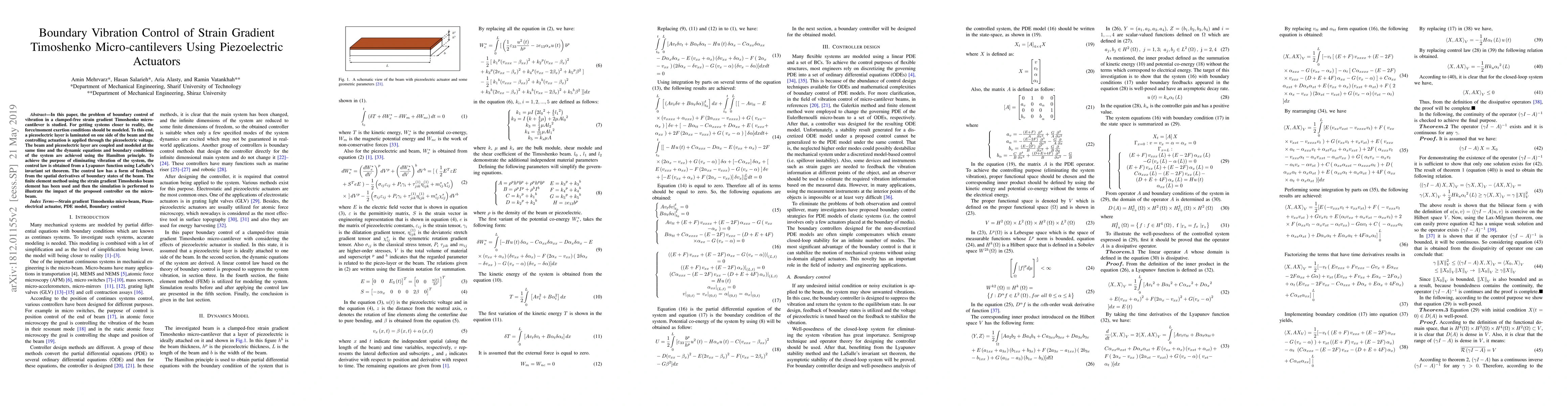 The work introduces a comprehensive approach to boundary vibration control in strain gradient Timoshenko micro-cantilevers, combining strain gradient elasticity theory with piezoelectric actuation and control design, providing a robust theoretical foundation for future experimental validations and practical applications.