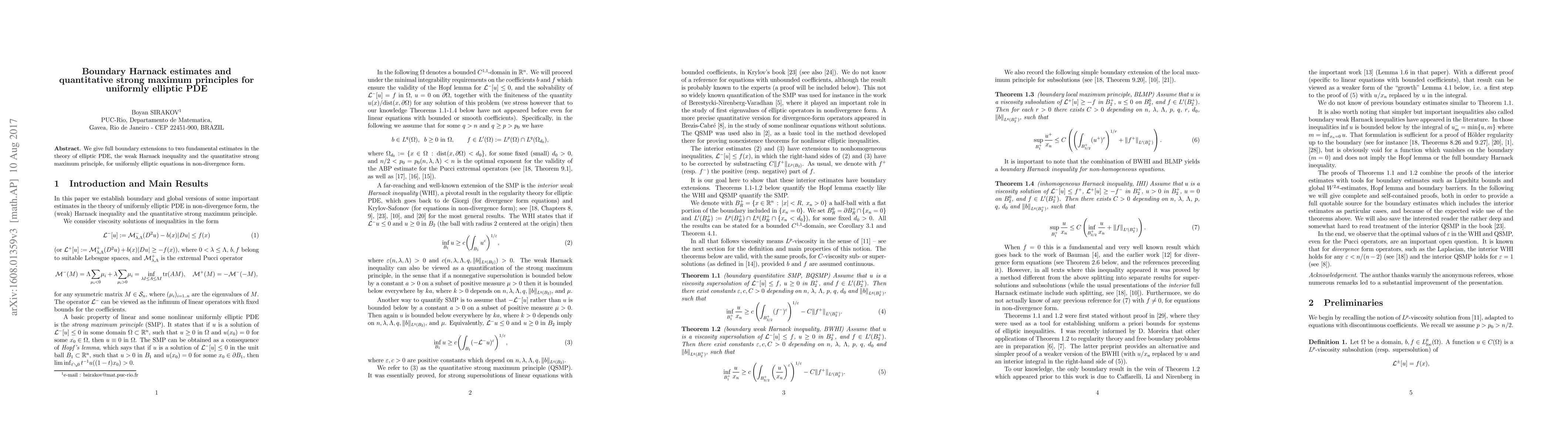 Summary: This paper provides full boundary extensions for the weak Harnack inequality and the quantitative strong maximum principle for uniformly elliptic partial differential equations in non-divergence form. These extensions enhance the understanding of boundary behavior in elliptic PDEs.