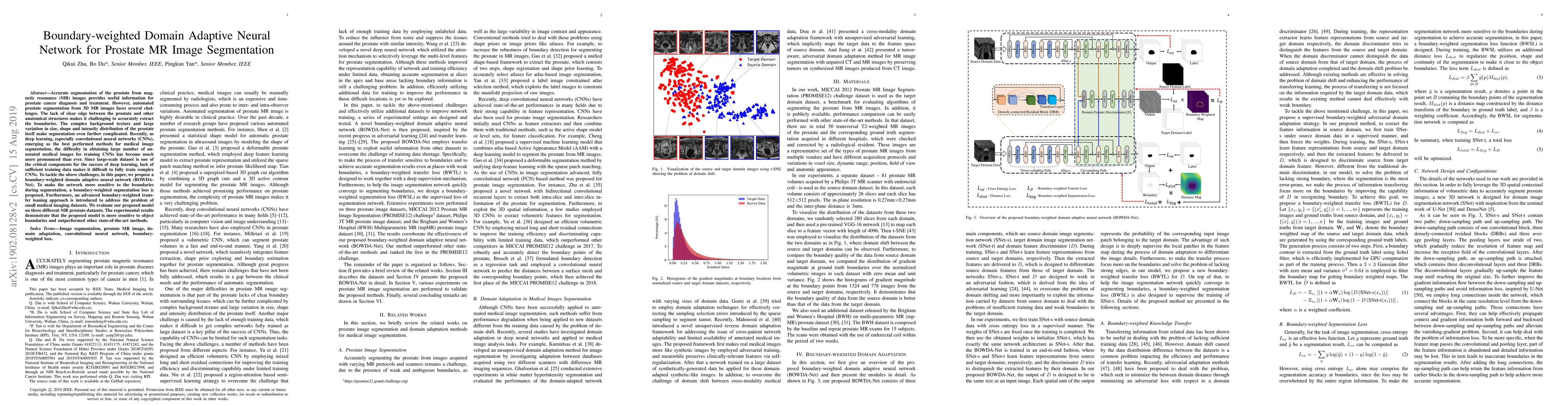 This paper proposes a boundary-weighted domain adaptive neural network (BOWDA-Net) to improve prostate segmentation in MR images. The model uses a boundary-weighted segmentation loss to enhance boundary sensitivity and an advanced transfer learning approach to address the scarcity of annotated medical data, achieving superior performance compared to other methods.
