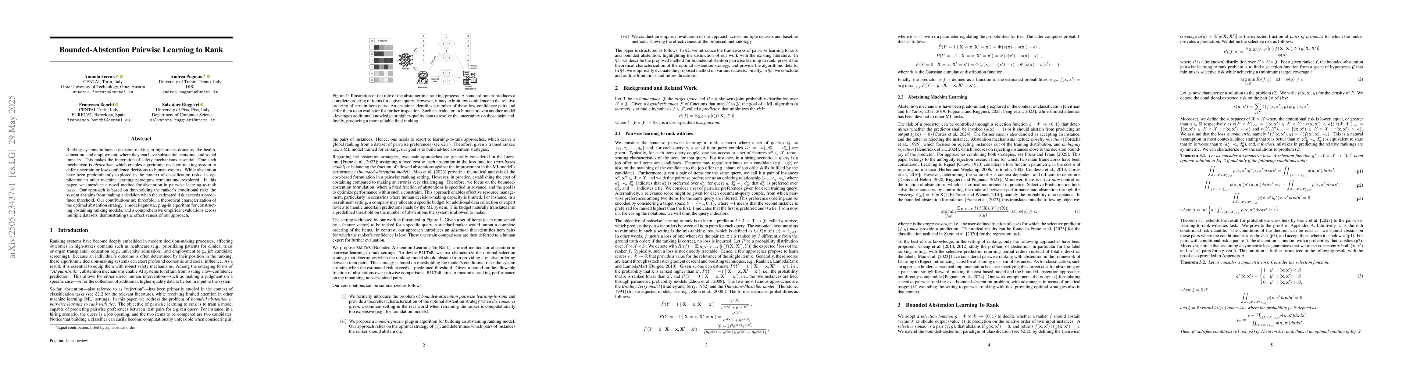 The paper presents a theoretical characterization of the optimal abstention strategy and a model-agnostic algorithm for constructing abstaining ranking models, named BALToR.