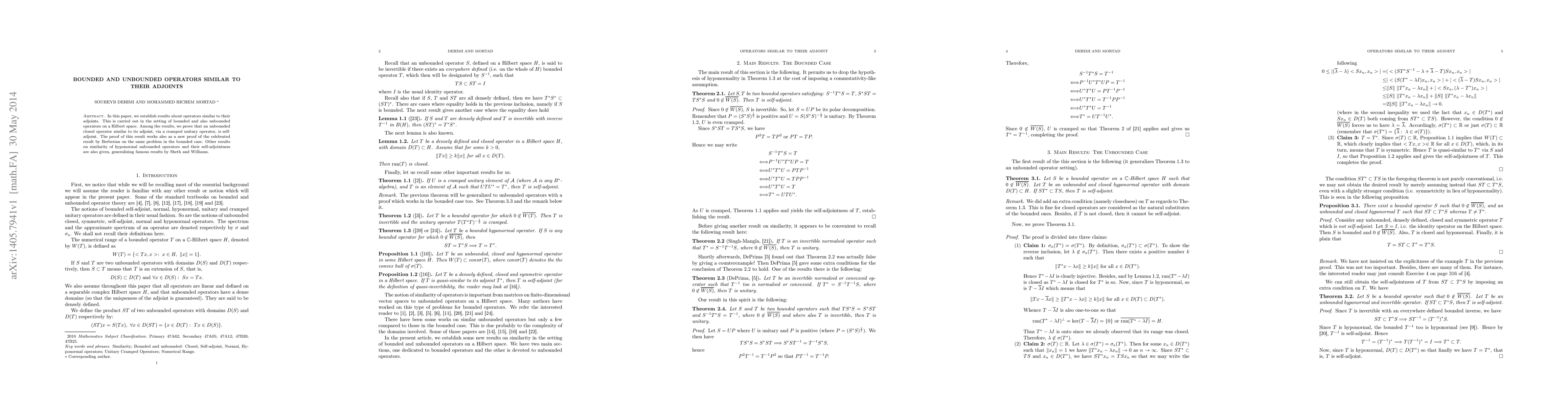 This paper investigates operators on a Hilbert space that are similar to their adjoints, proving that an unbounded closed operator similar to its adjoint via a unitary operator is self-adjoint. It also provides a new proof for the bounded case and generalizes results on hyponormal unbounded operators and their self-adjointness.