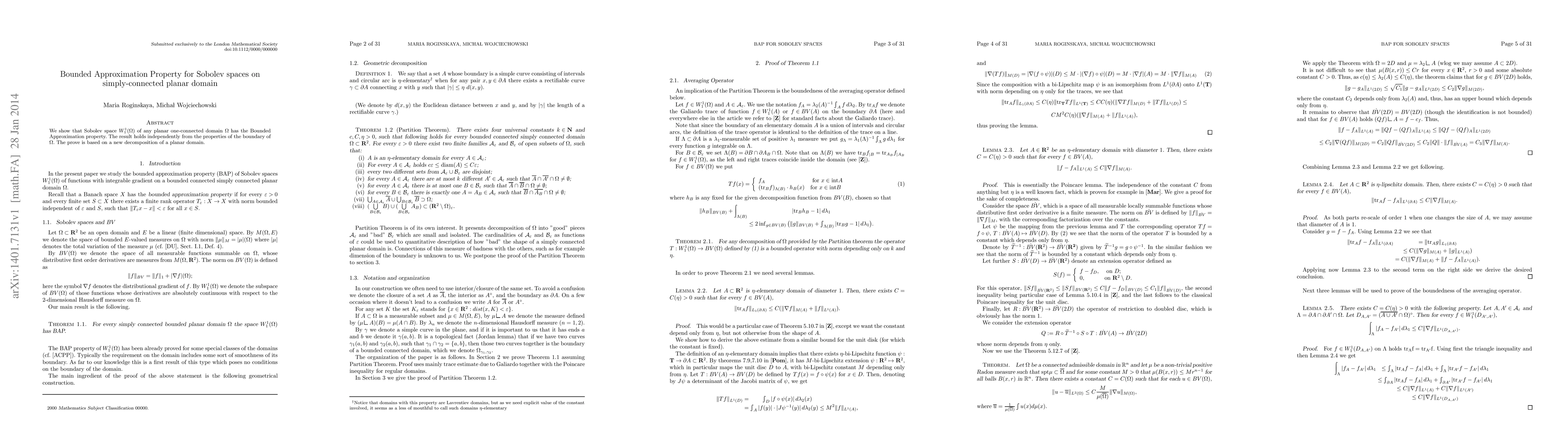 Sobolev spaces on simply-connected planar domains have the Bounded Approximation property, found independently of domain boundary properties, through a new decomposition method.