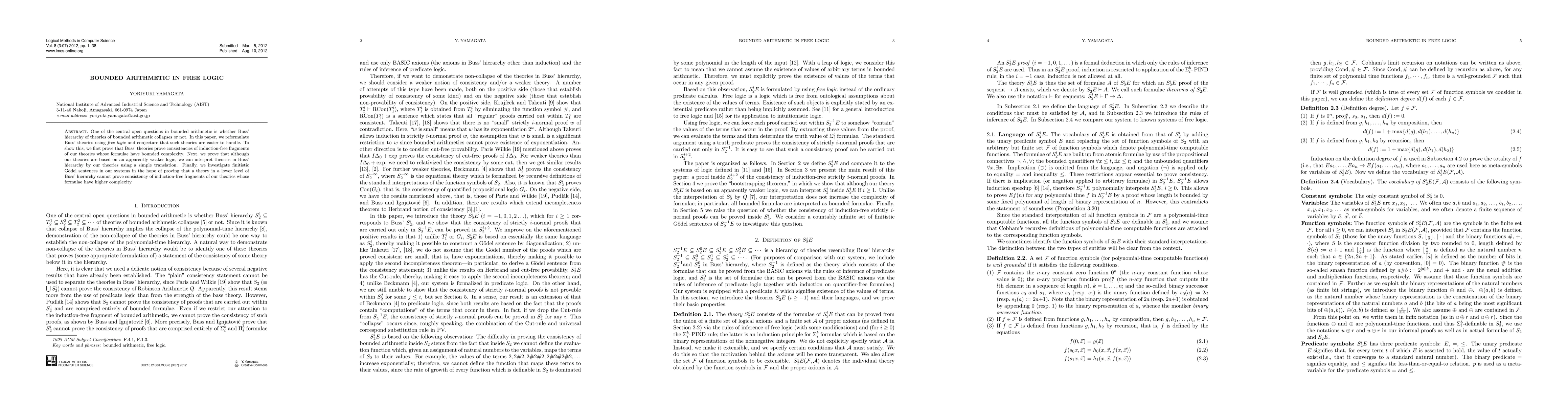 The paper introduces a free logic framework for reformulating Buss' bounded arithmetic theories, demonstrating new proof techniques and interpretations.