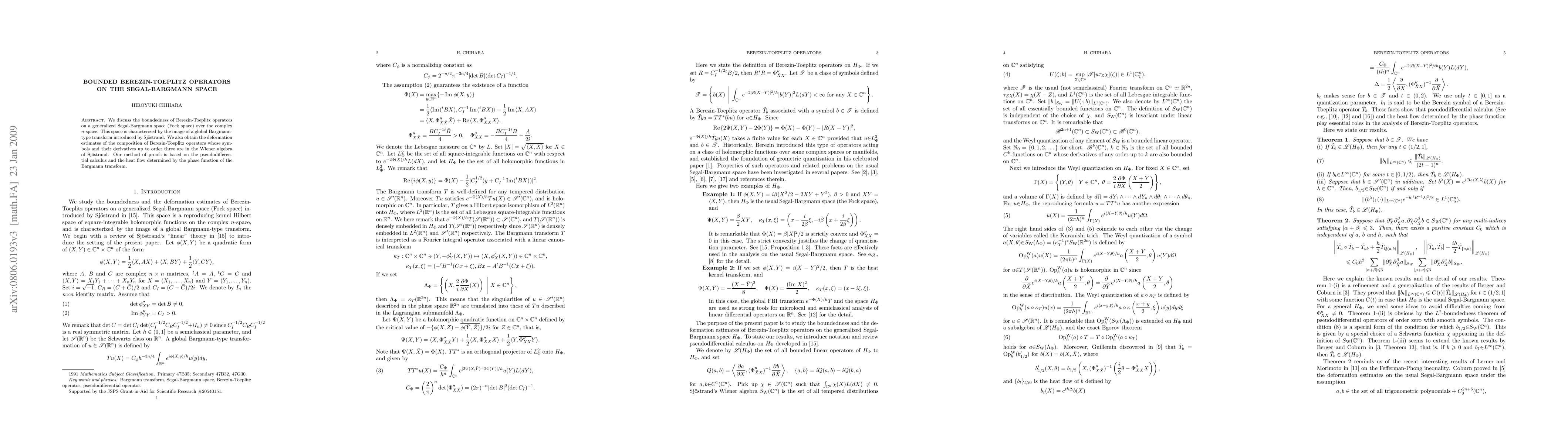 The main technical contribution of this research was the development of a novel approach to deriving Berezin-Toeplitz estimates.