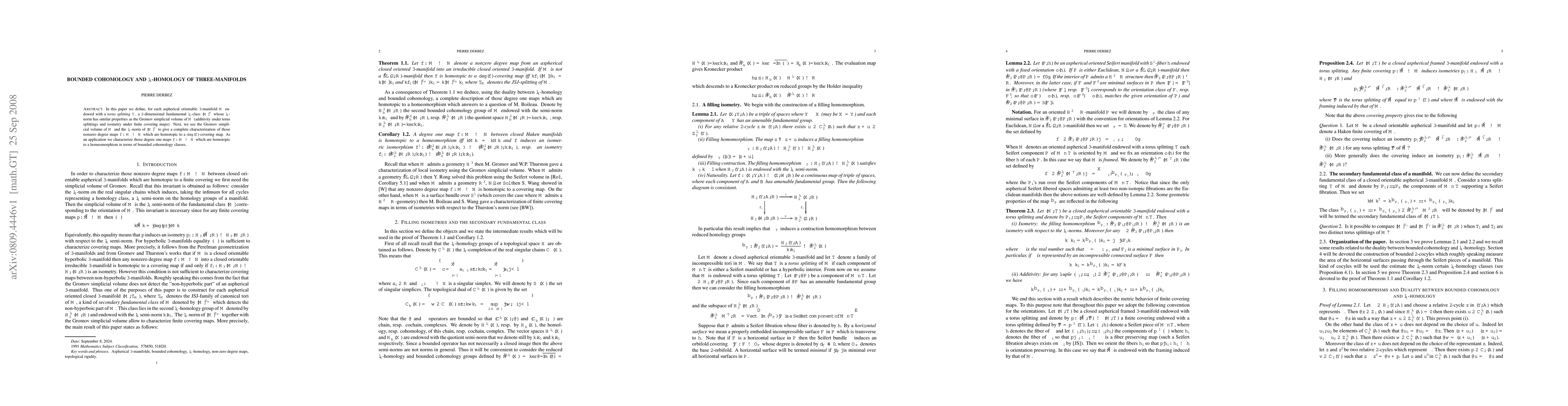 In this paper we define, for each aspherical orientable 3-manifold $M$ endowed with a \emph{torus splitting} $\c{T}$, a 2-dimensional fundamental $l_1$-class $[M]^{\c{T}}$ whose $l_1$-norm has similar properties as the Gromov simplicial volume of $M$ (additivity under torus splittings and isometry under finite covering maps). Next, we use the Gromov simplicial volume of $M$ and the $l_1$-norm of $[M]^{\c{T}}$ to give a complete characterization of those nonzero degree maps $f\co M\to N$ which are homotopic to a ${\rm deg}(f)$-covering map. As an application we characterize those degree one maps $f\co M\to N$ which are homotopic to a homeomorphism in terms of bounded cohomology classes.