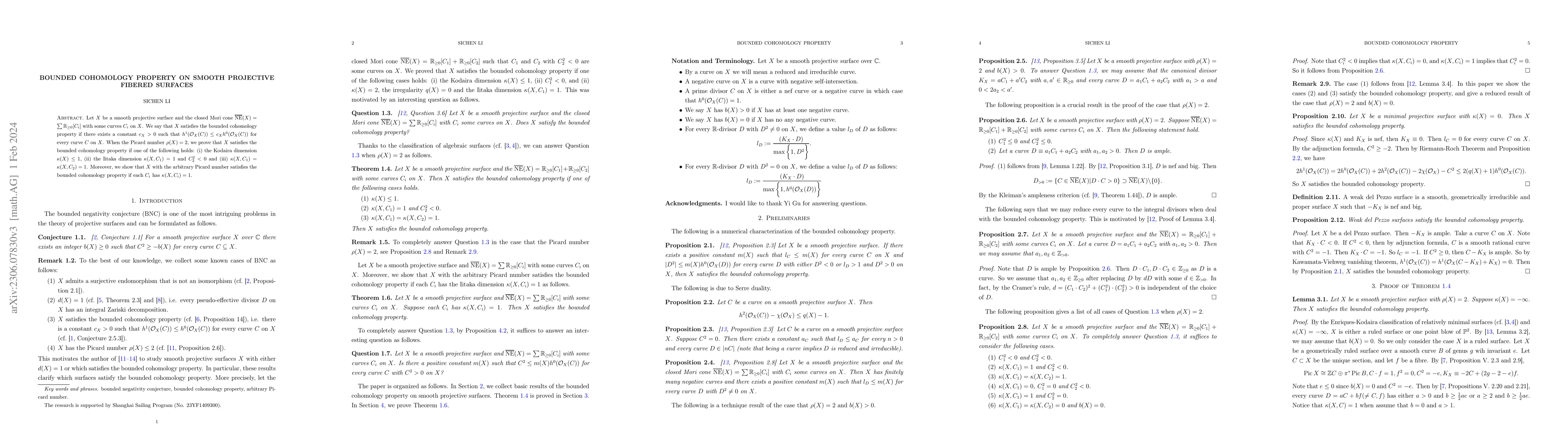 This paper proves that a smooth projective surface $X$ with Picard number $\rho(X)=2$ satisfies the bounded cohomology property if its Kodaira dimension is $\le1$ or if specific conditions on Iitaka dimensions and curve intersections are met. It also shows that surfaces with any Picard number satisfy this property if each curve has Kodaira dimension 1.