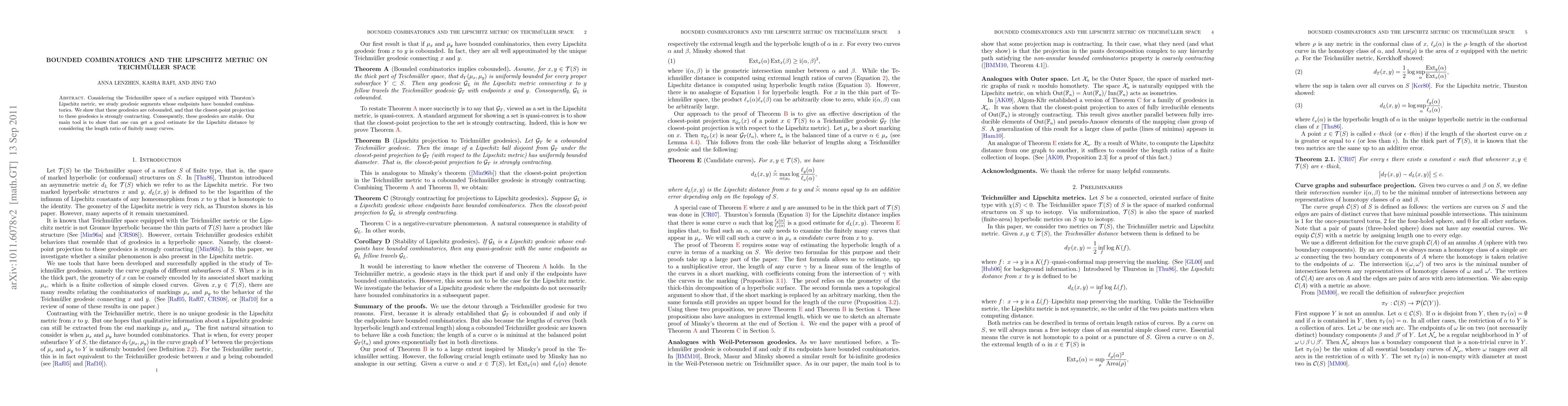 This paper studies geodesic segments in Teichm"uller space with bounded combinatorics, showing they are stable and have a strongly contracting closest-point projection.