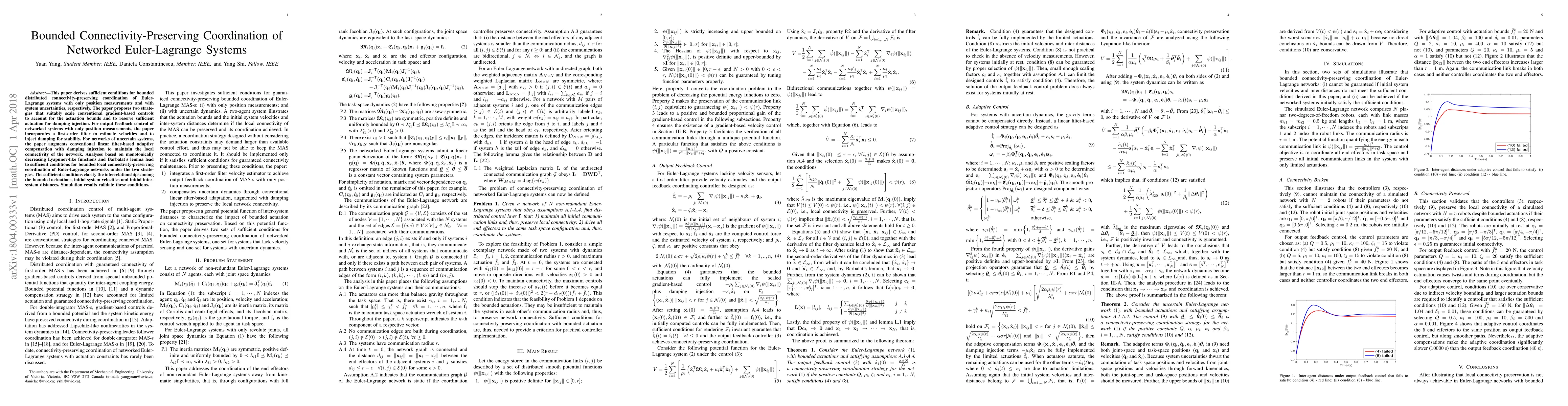 This paper develops strategies for bounded connectivity-preserving coordination of networked Euler-Lagrange systems, addressing uncertainties and actuation bounds. It proposes adaptive control methods incorporating damping injection and first-order filters for stability, validated through simulations.