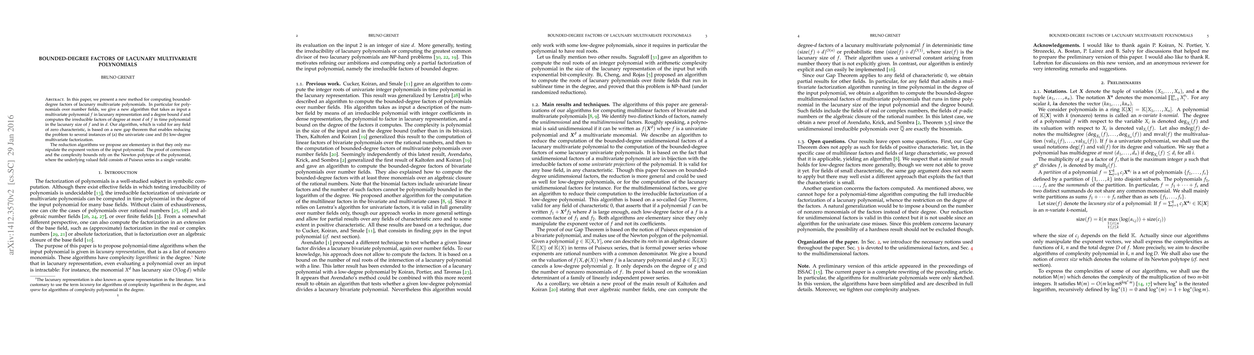 This paper introduces a new algorithm for computing bounded-degree factors of lacunary multivariate polynomials over number fields, based on a novel gap theorem. The algorithm efficiently reduces the problem to univariate and low-degree multivariate factorization, relying on the Newton polytope and Puiseux series.