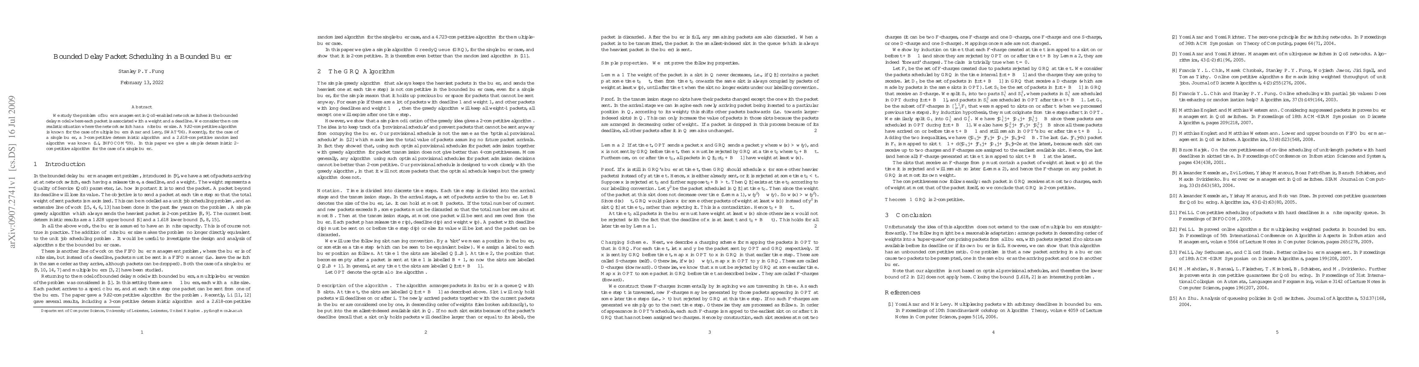 This paper presents a simple deterministic algorithm achieving a 2-competitive ratio for packet scheduling in network switches with a single bounded buffer, aiming to manage packets with associated weights and deadlines under Quality of Service (QoS) constraints. This improves upon existing algorithms for single-buffer scenarios.