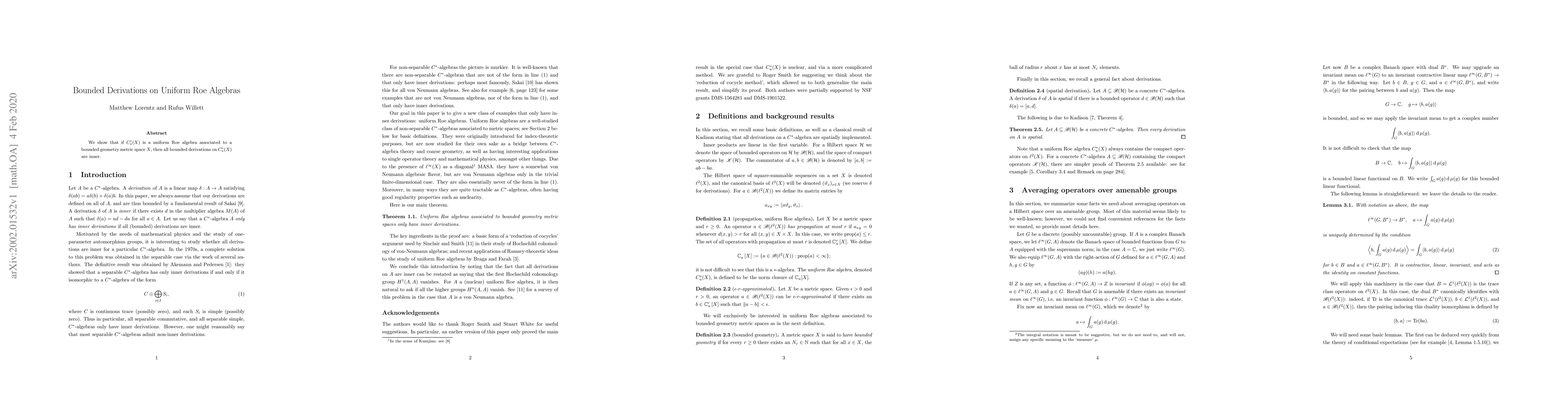 Summary: The paper demonstrates that in the context of uniform Roe algebras associated with bounded geometry metric spaces, all bounded derivations are inner derivations. This result highlights the algebraic structure of these algebras.