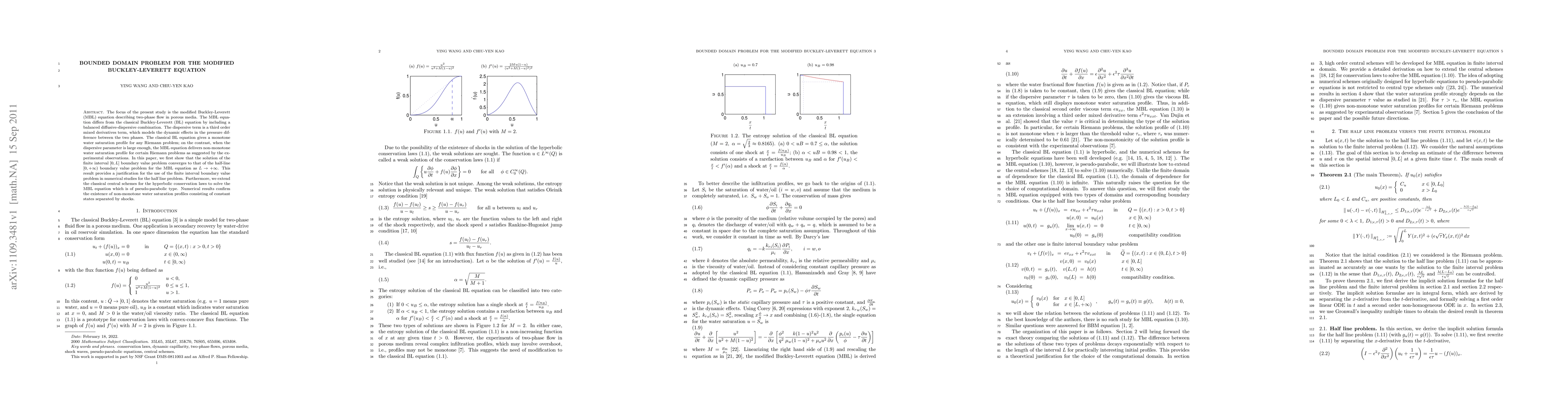 The focus of the present study is the modified Buckley-Leverett (MBL) equation describing two-phase flow in porous media. The MBL equation differs from the classical Buckley-Leverett (BL) equation by including a balanced diffusive-dispersive combination. The dispersive term is a third order mixed derivatives term, which models the dynamic effects in the pressure difference between the two phases. The classical BL equation gives a monotone water saturation profile for any Riemann problem; on the contrast, when the dispersive parameter is large enough, the MBL equation delivers non-monotone water saturation profile for certain Riemann problems as suggested by the experimental observations. In this paper, we first show that the solution of the finite interval [0,L] boundary value problem converges to that of the half-line [0,+\infty) boundary value problem for the MBL equation as L-> +\infty. This result provides a justification for the use of the finite interval boundary value problem in numerical studies for the half line problem. Furthermore, we extend the classical central schemes for the hyperbolic conservation laws to solve the MBL equation which is of pseudo-parabolic type. Numerical results confirm the existence of non-monotone water saturation profiles consisting of constant states separated by shocks.