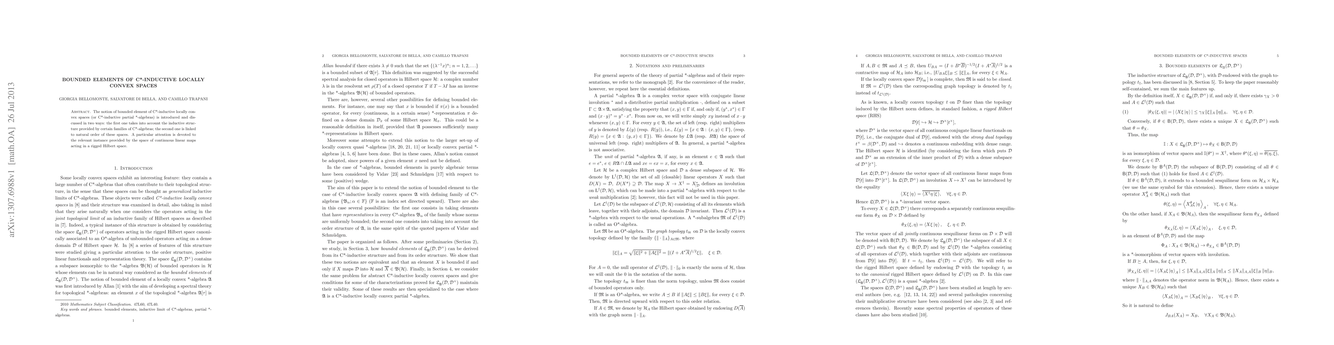 This paper introduces the concept of bounded elements in C*-inductive locally convex spaces, exploring it through their inductive structure and natural order. It also focuses on the bounded elements in the space of continuous linear maps in a rigged Hilbert space.