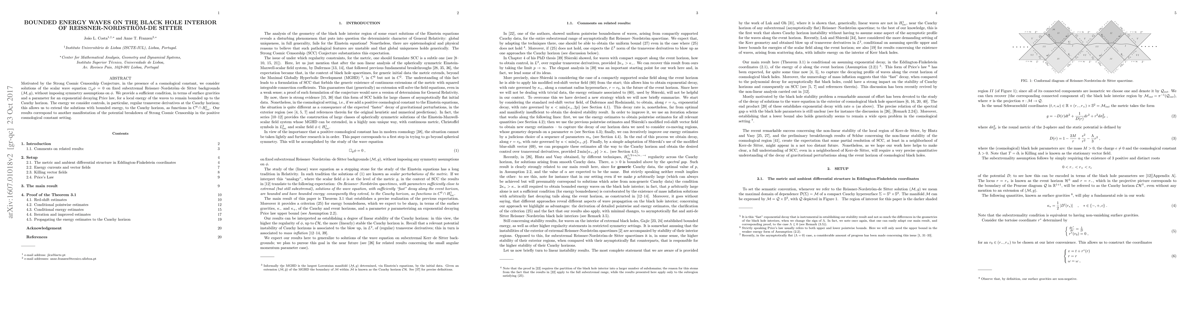 This paper investigates scalar wave solutions on Reissner-Nordström-de Sitter spacetimes, focusing on bounded energy conditions up to the Cauchy horizon. It provides a sufficient condition for maintaining bounded energy, extending solutions to the Cauchy horizon and suggesting potential violations of the Strong Cosmic Censorship Conjecture in cosmological settings.