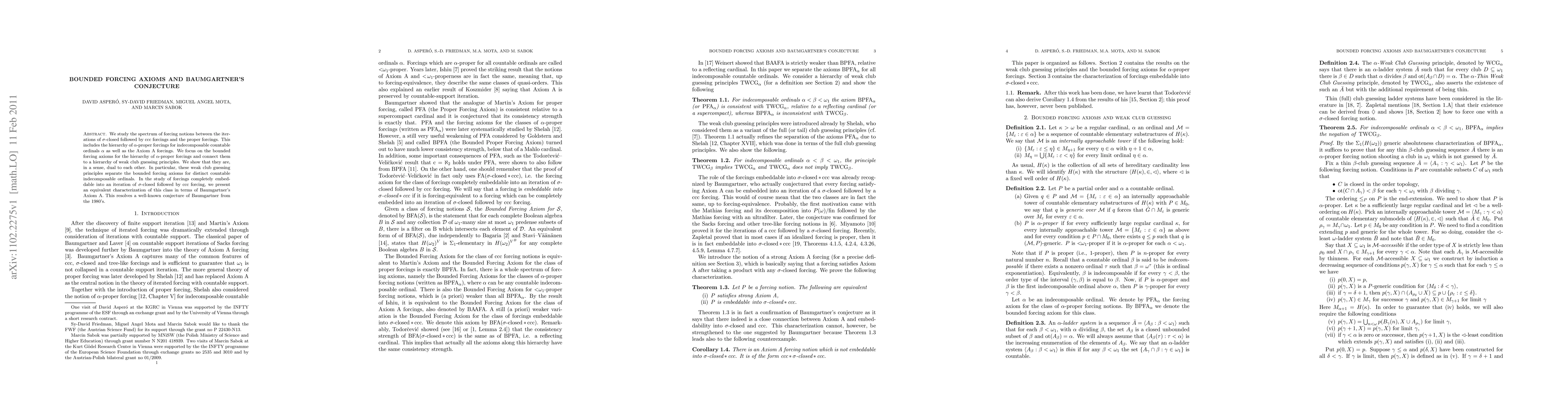 This paper explores the spectrum of forcing notions between $\sigma$-closed and ccc forcings, focusing on $\alpha$-proper forcings and Axiom A forcings. It establishes a dual relationship between bounded forcing axioms and weak club guessing principles, resolving Baumgartner's conjecture regarding the characterization of certain forcings.