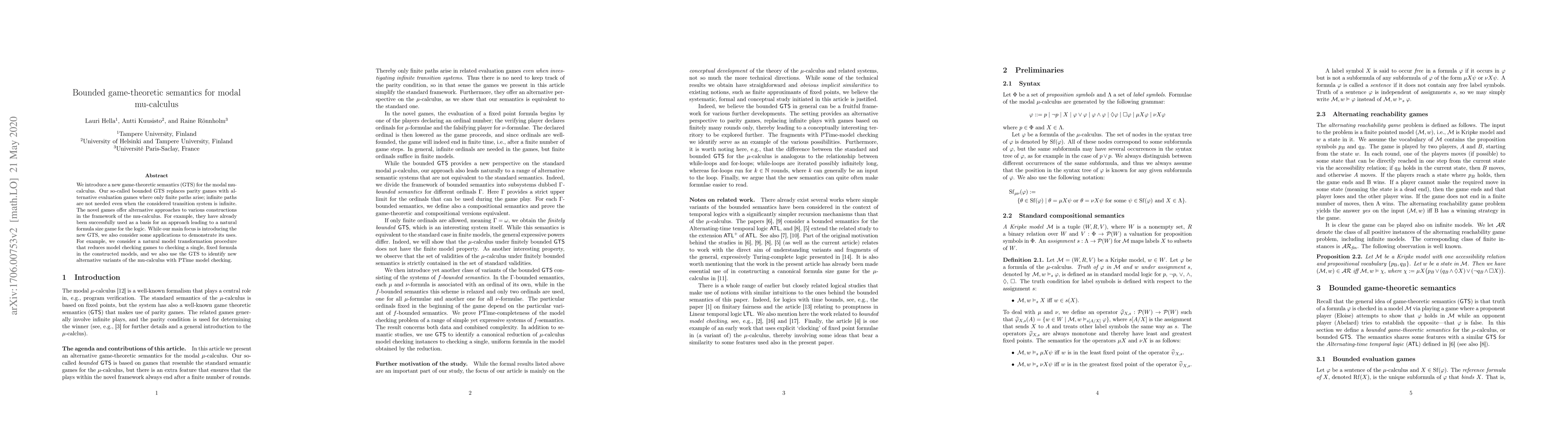 This paper introduces a bounded game-theoretic semantics for the modal mu-calculus that replaces parity games with finite evaluation games, simplifying model checking. It demonstrates applications such as a model transformation procedure and new PTime model checking variants.