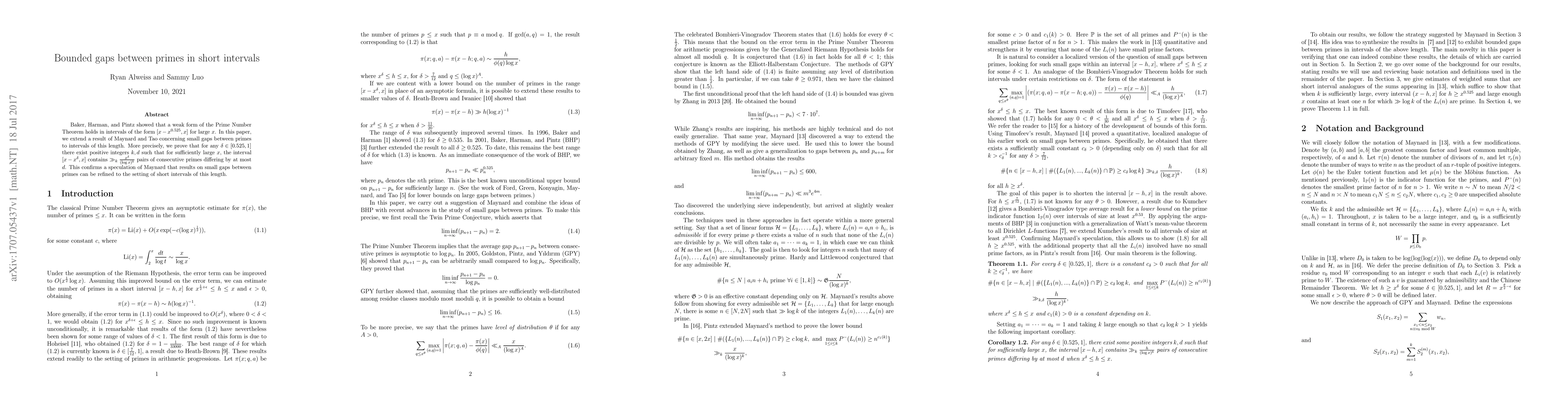 This paper extends the study of small gaps between primes to intervals of the form $[x-x^\delta,x]$ for $\delta\in[0.525,1]$. It confirms that such intervals contain many pairs of primes with small differences, validating Maynard's conjecture on refining results for short prime intervals.