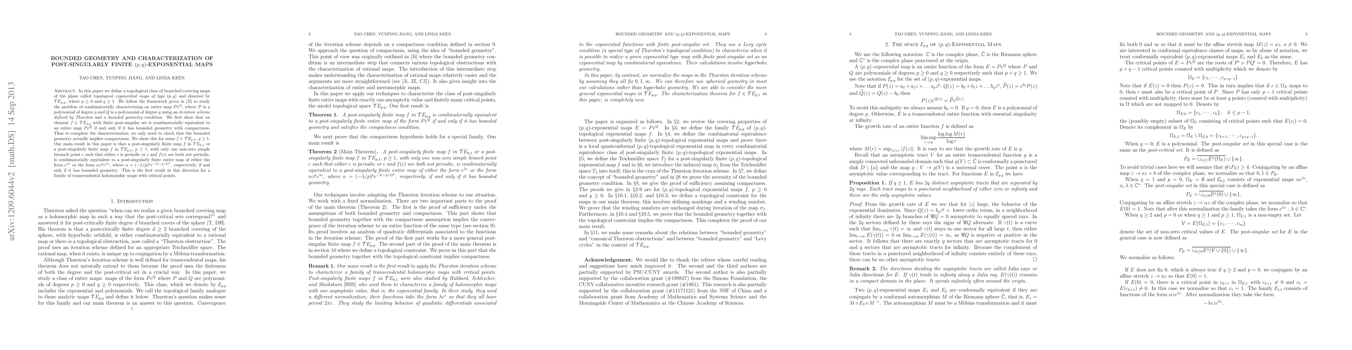 Researchers define a class of maps called topological exponential maps with bounded geometry, showing that post-singularly finite maps in this class are combinatorially equivalent to entire maps if they have bounded geometry.