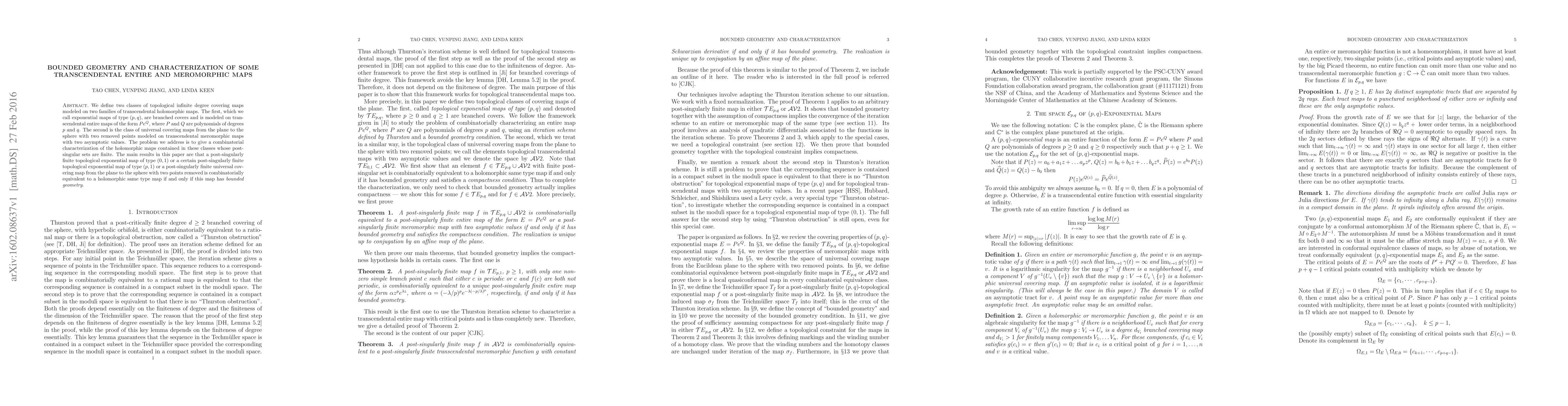 This paper defines two classes of transcendental holomorphic maps and explores their topological properties. It provides a combinatorial characterization of maps within these classes that have finite post-singular sets, proving that such maps are equivalent to holomorphic maps if they exhibit bounded geometry.