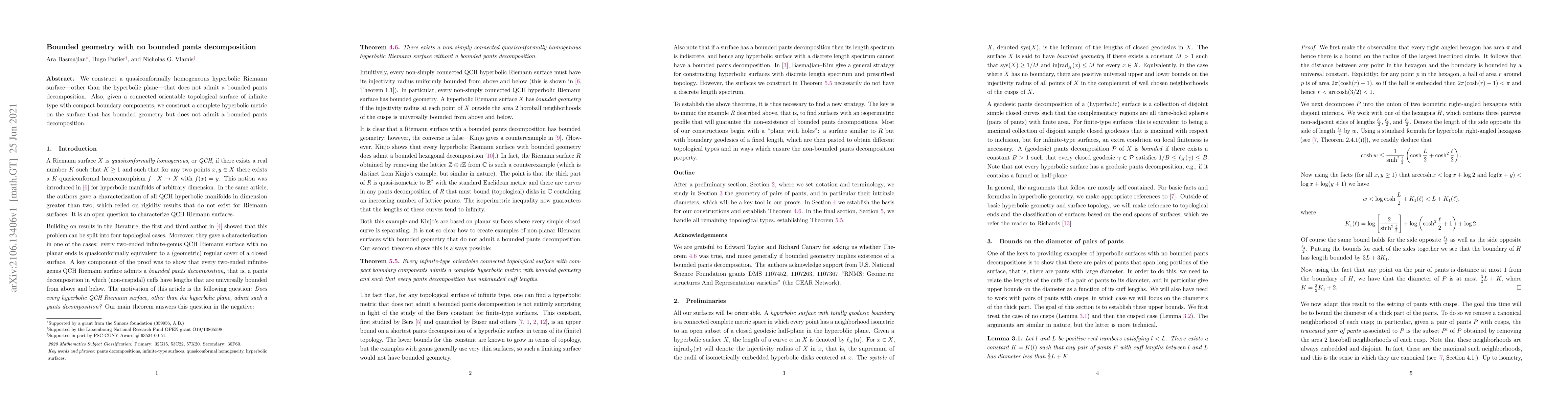 This paper constructs a quasiconformally homogeneous hyperbolic Riemann surface with bounded geometry that lacks a bounded pants decomposition. It also develops a complete hyperbolic metric on an infinite-type surface with compact boundaries, maintaining bounded geometry but still without a bounded pants decomposition.