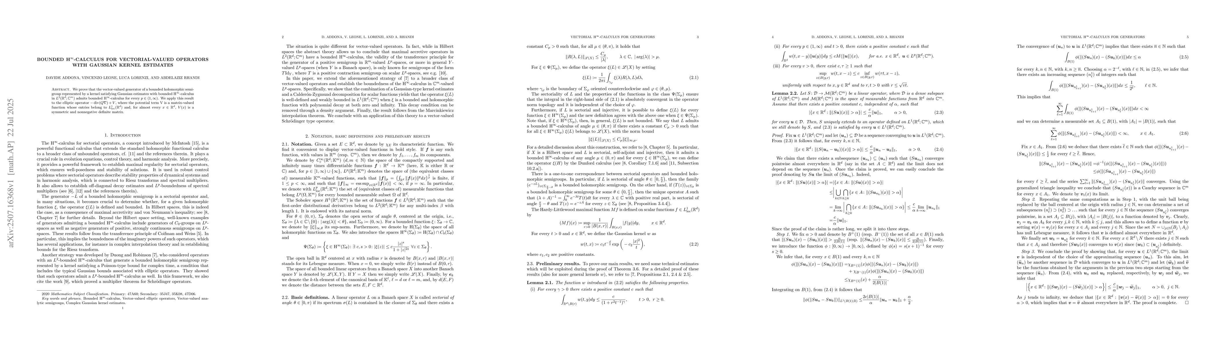 The paper employs techniques from harmonic analysis and operator theory, specifically focusing on bounded $H^\infty$-calculus for vector-valued operators with Gaussian kernel estimates.