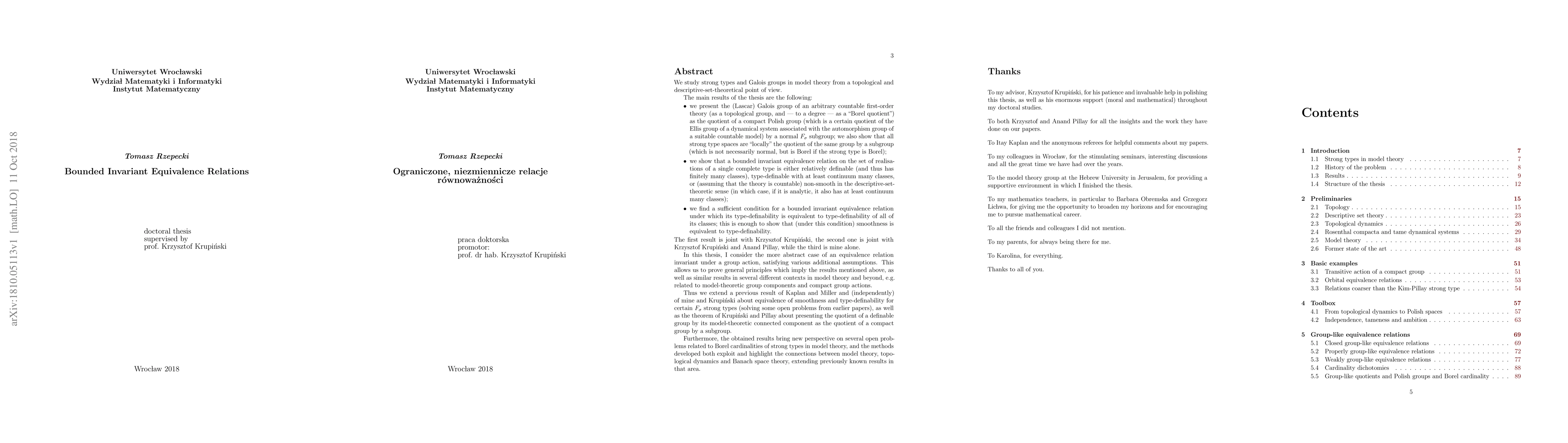 We study strong types and Galois groups in model theory from a topological and descriptive-set-theoretical point of view, leaning heavily on topological dynamical tools. More precisely, we give an abstract (not model theoretic) treatment of problems related to cardinality and Borel cardinality of strong types, quotients of definable groups and related objecets, generalising (and often improving) essentially all hitherto known results in this area. In particular, we show that under reasonable assumptions, strong type spaces are "locally" quotients of compact Polish groups. It follows that they are smooth if and only if they are type-definable, and that a quotient of a type-definable group by an analytic subgroup is either finite or of cardinality at least continuum.