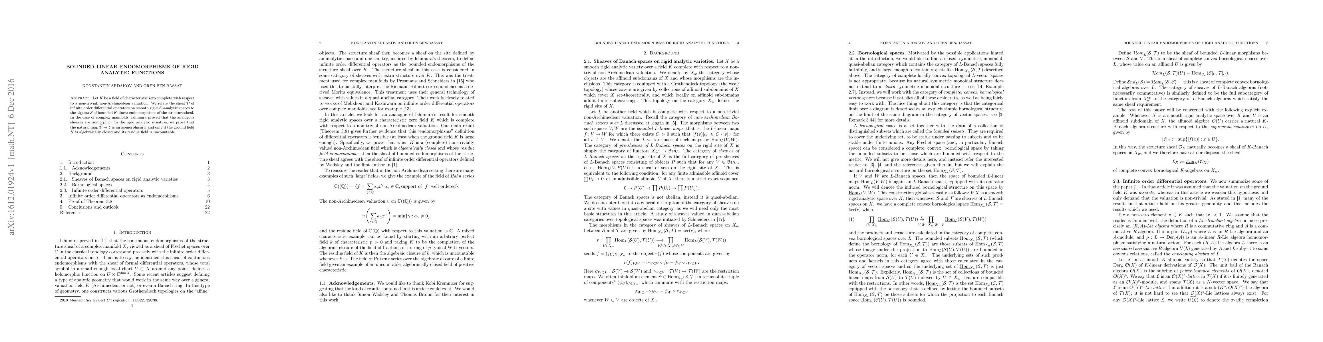 Researchers found that bounded linear endomorphisms of rigid analytic functions are isomorphic to a specific sheaf if the ground field is algebraically closed and its residue field is uncountable.