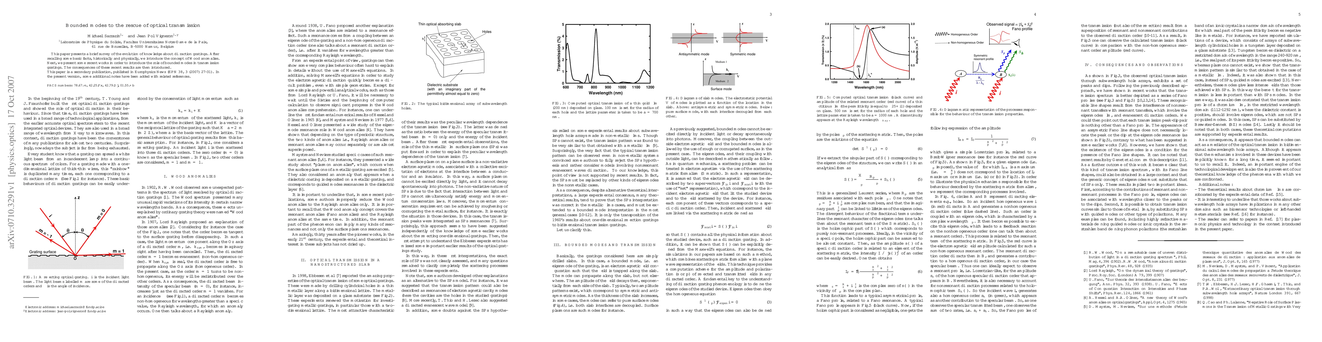 This paper presents a brief survey of the evolution of knowledge about diffraction gratings. After recalling some basic facts, historically and physically, we introduce the concept of Wood anomalies. Next, we present some recent works in order to introduce the role of bounded modes in transmission gratings. The consequences of these recent results are then introduced. This paper is a secondary publication, published in Europhysics News (EPN 38, 3 (2007) 27-31). In the present version, some additional notes have been added with related references.