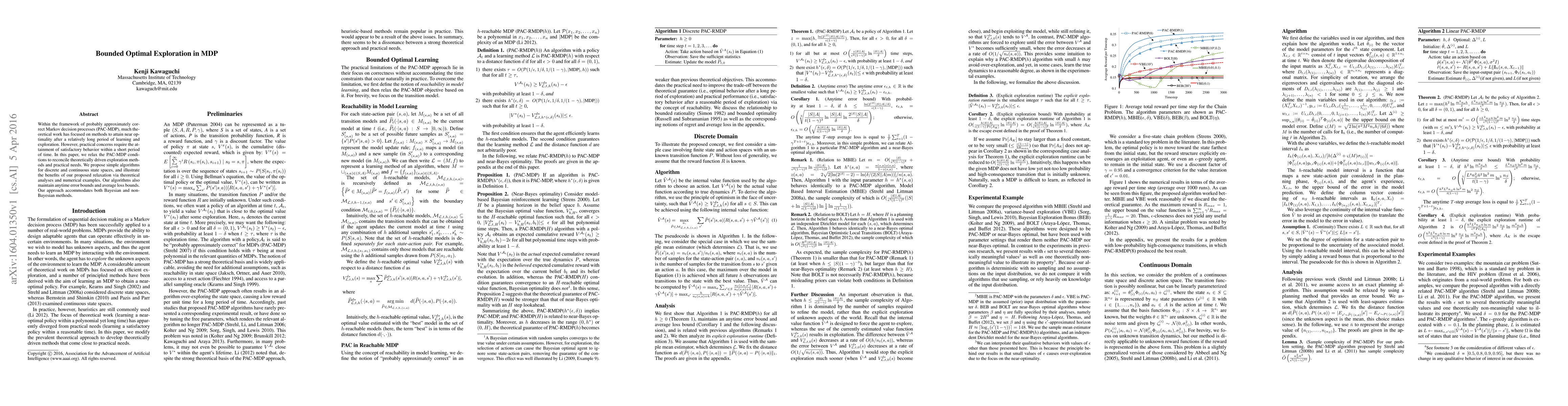 Within the framework of probably approximately correct Markov decision processes (PAC-MDP), much theoretical work has focused on methods to attain near optimality after a relatively long period of learning and exploration. However, practical concerns require the attainment of satisfactory behavior within a short period of time. In this paper, we relax the PAC-MDP conditions to reconcile theoretically driven exploration methods and practical needs. We propose simple algorithms for discrete and continuous state spaces, and illustrate the benefits of our proposed relaxation via theoretical analyses and numerical examples. Our algorithms also maintain anytime error bounds and average loss bounds. Our approach accommodates both Bayesian and non-Bayesian methods.