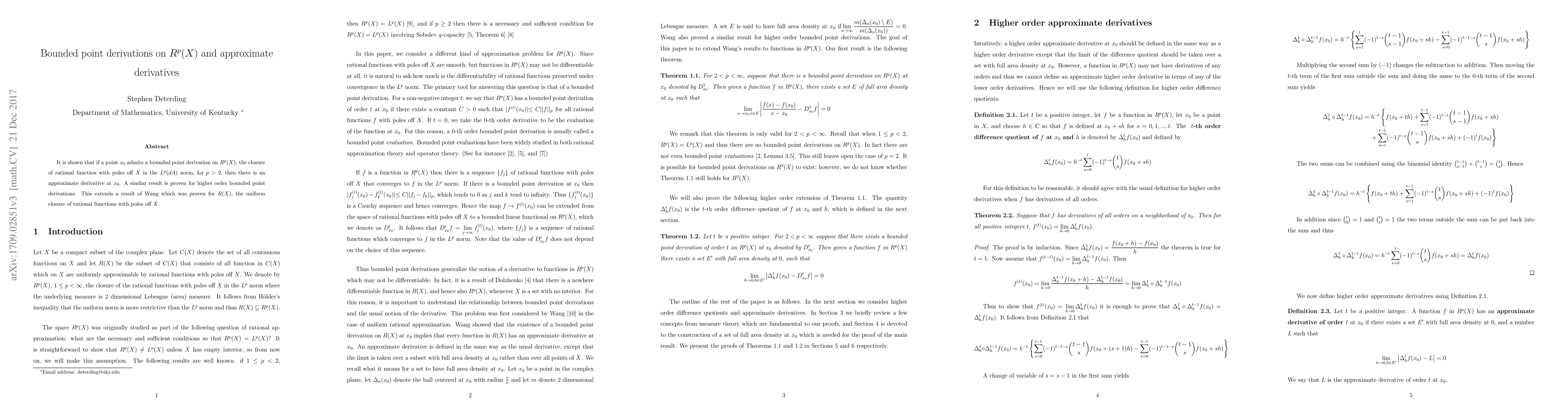 A new result extends previous findings on rational functions with poles off a set X: if a point has a bounded point derivation on the L^p norm of such functions for p > 2, it admits an approximate derivative.