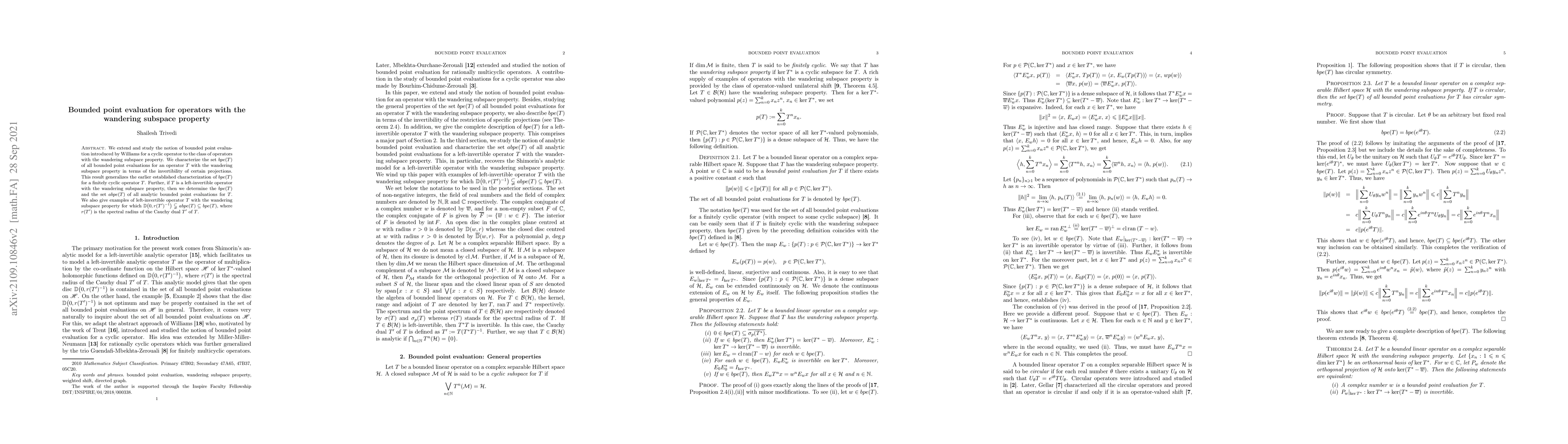 This paper generalizes bounded point evaluation for finitely cyclic operators to operators with the wandering subspace property, determining characteristics of bounded and analytic evaluations in terms of projections.