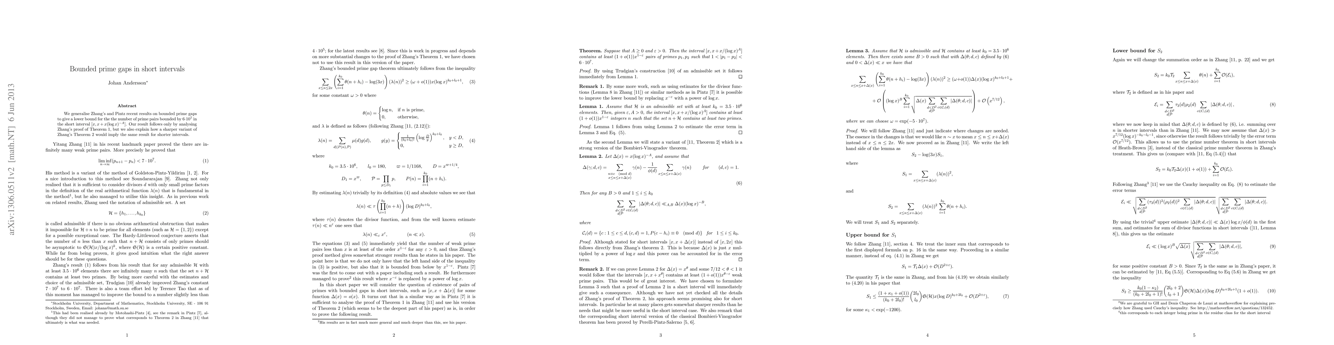 This paper generalizes Zhang and Pintz's findings on bounded prime gaps, establishing a lower bound for prime pairs within the interval $[x,x+x (\log x)^{-A}]$ up to $6 \times 10^7$. The result is derived primarily from an analysis of Zhang's proof, with additional discussion on how a refined version of his Theorem 2 could extend the findings to shorter intervals.