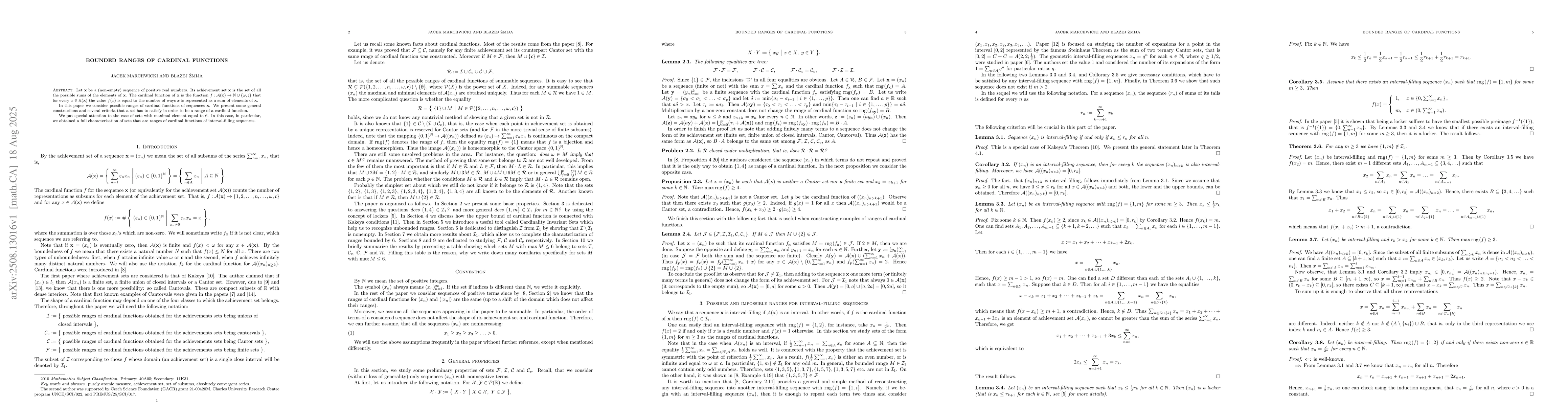 Let $\mathbf{x}$ be a (non-empty) sequence of positive real numbers. Its achievement set $\mathcal{\mathbf{x}}$ is the set of all the possible sums of the elements of $\mathbf{x}$. The cardinal function of $\mathbf{x}$ is the function $f:\mathcal{A}(\mathbf{x}) \to \mathbb{N}\cup\{\omega,\mathfrak{c}\}$ that for every $x\in\mathbb{A}(\mathbf{x})$ the value $f(x)$ is equal to the number of ways $x$ is represented as a sum of elements of $\mathbf{x}$. In this paper we consider possible ranges of cardinal functions of sequences $\mathbf{x}$. We present some general constructions and several criteria that a set has to satisfy in order to be a range of a cardinal function. We put special attention to the case of sets with maximal element equal to $6$. In this case, in particular, we obtained a full characterisation of sets that are ranges of cardinal functions of interval-filling sequences.