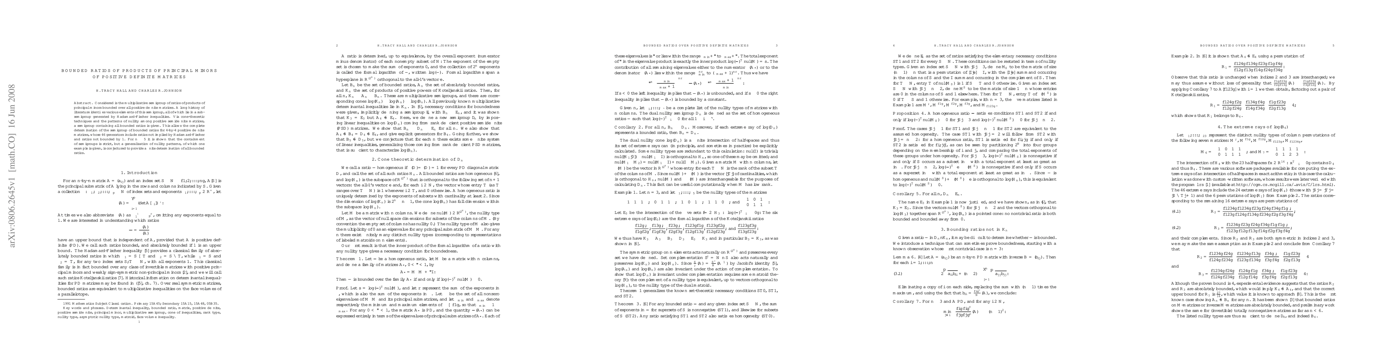 This paper explores the semigroup of bounded ratios formed by products of principal minors of positive definite matrices, identifying new generators for 4x4 matrices beyond those implied by Hadamard-Fischer inequalities, and conjectures a method for determining these ratios for larger matrices.