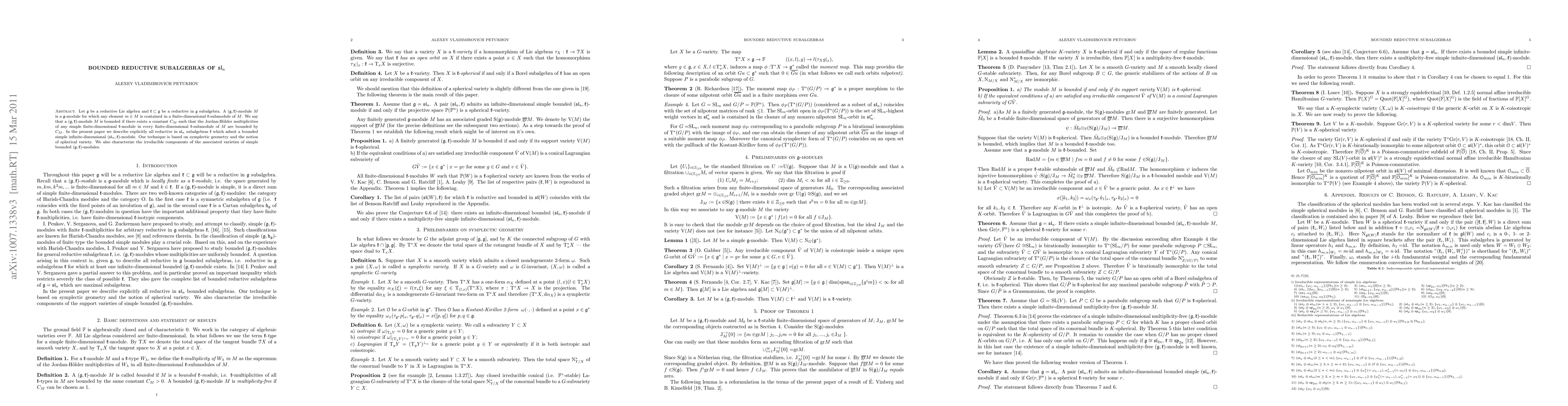 This paper describes all reductive subalgebras of sl(n) that contain infinite-dimensional bounded modules, using symplectic geometry and spherical varieties.