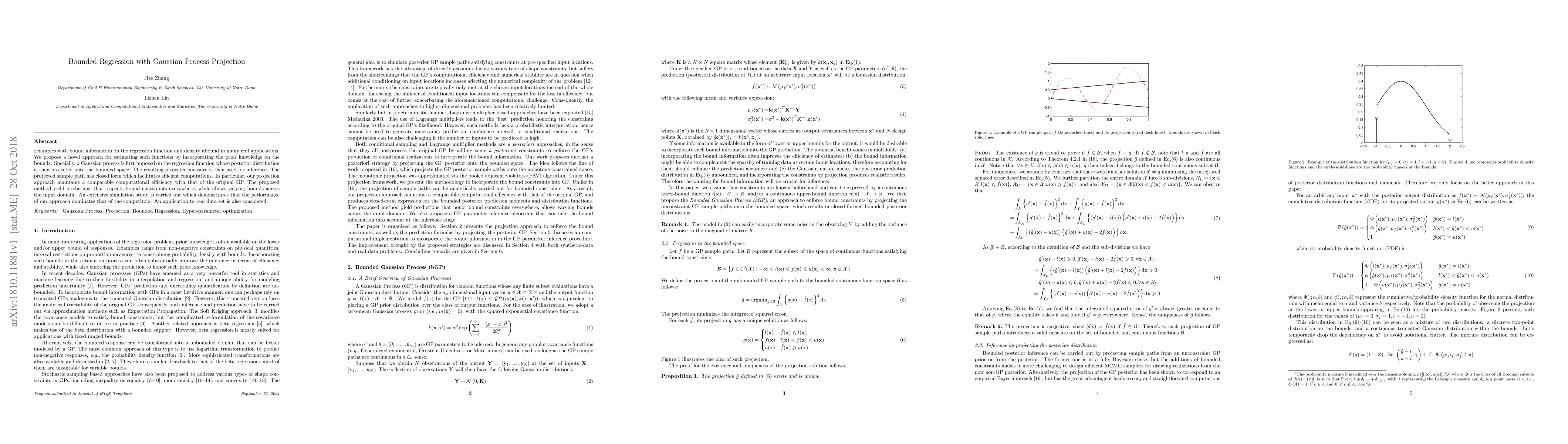 This paper proposes a novel method for bounded regression using Gaussian process projection, which incorporates prior knowledge of bounds into the regression function. The method efficiently computes the projected posterior distribution, ensuring predictions respect the bounds while maintaining computational efficiency comparable to standard Gaussian processes. Simulation results show superior performance over competitors.