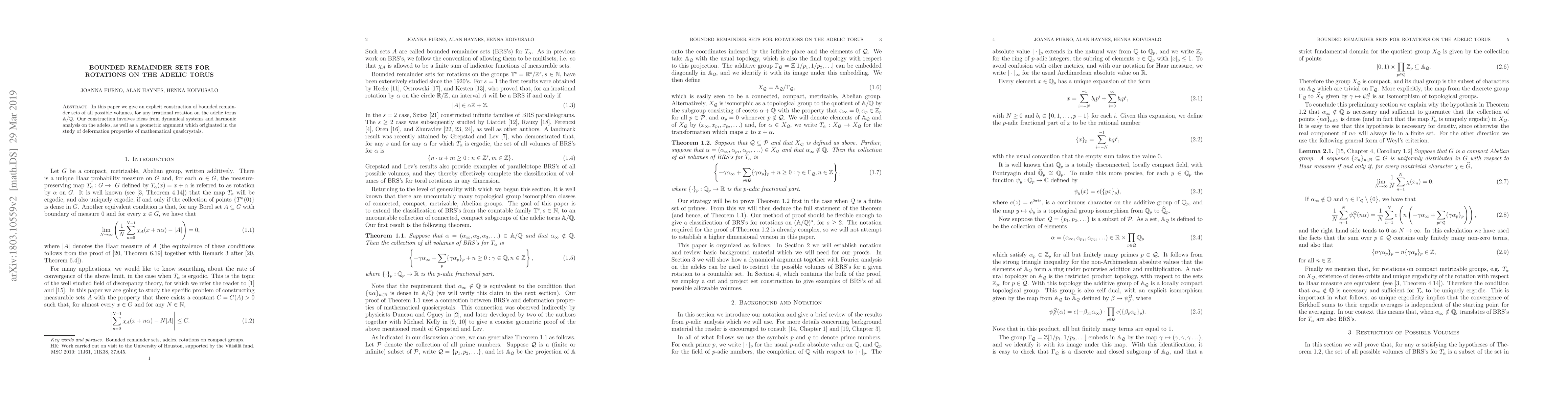 Researchers construct bounded remainder sets for irrational rotations on the adelic torus, leveraging dynamical systems and harmonic analysis, with implications for understanding deformation properties of mathematical quasicrystals.