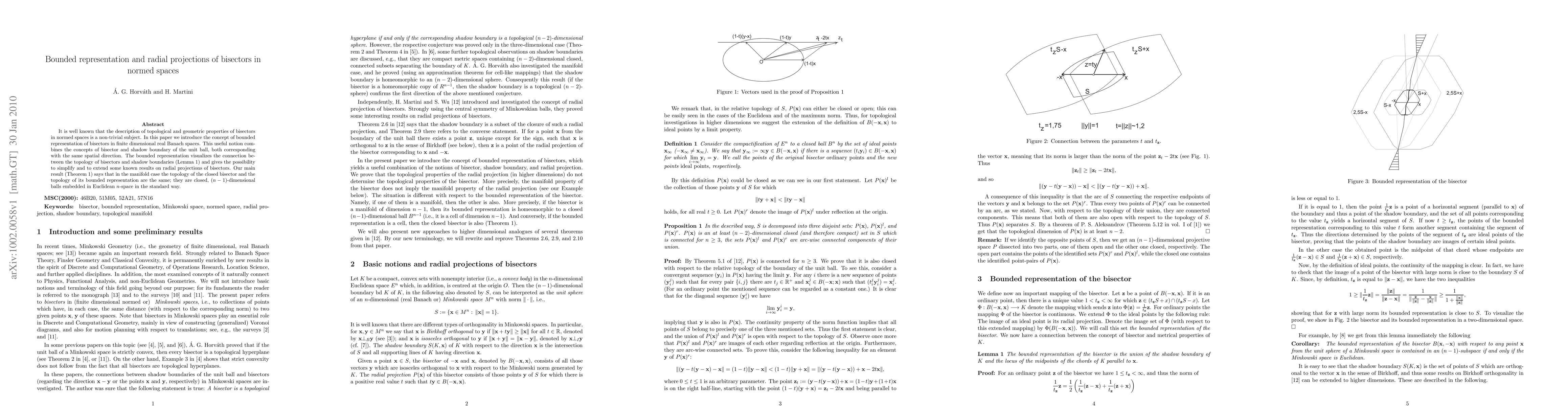 This paper introduces a new concept called bounded representation of bisectors in normed spaces, showing that it's topologically equivalent to the closed bisector and simplifying known results on radial projections.