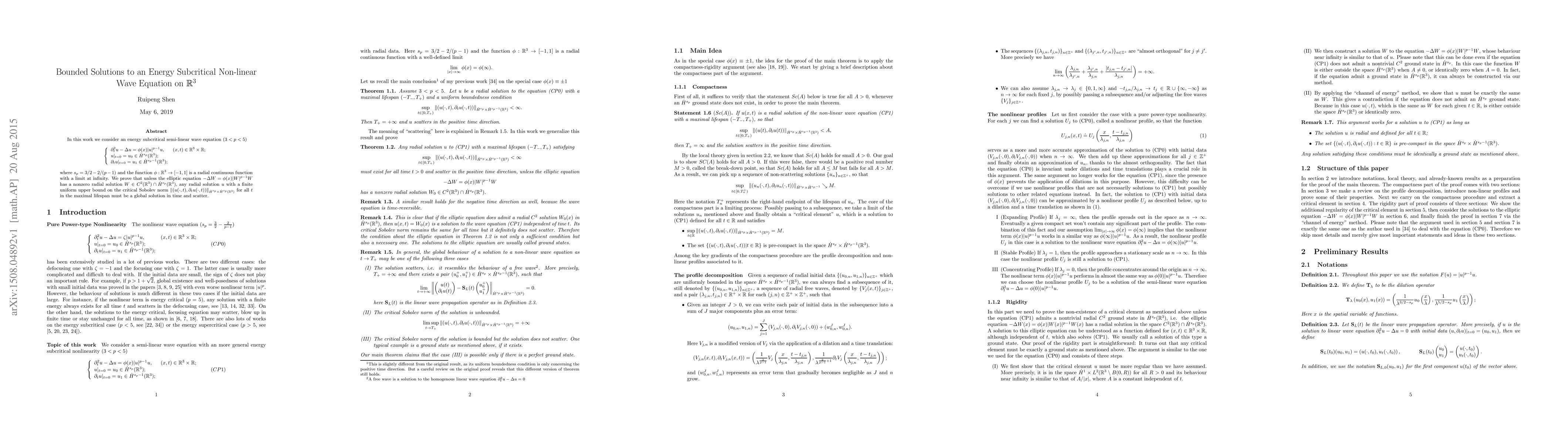 This paper investigates bounded solutions to an energy subcritical semi-linear wave equation in three dimensions, proving that unless a specific elliptic equation has a nonzero radial solution, any radial solution with a finite upper bound on its critical Sobolev norm must be global and scatter in time.